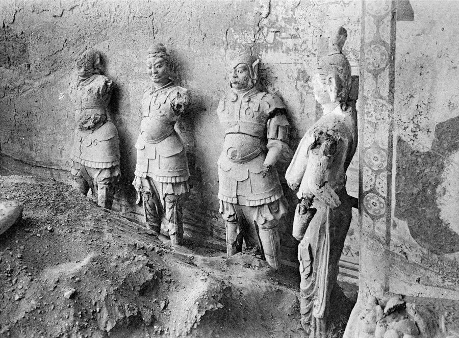 ▲莫高窟第459窟,原有天王立像三身及菩萨一身,均佚失无存。图/《世纪敦煌》