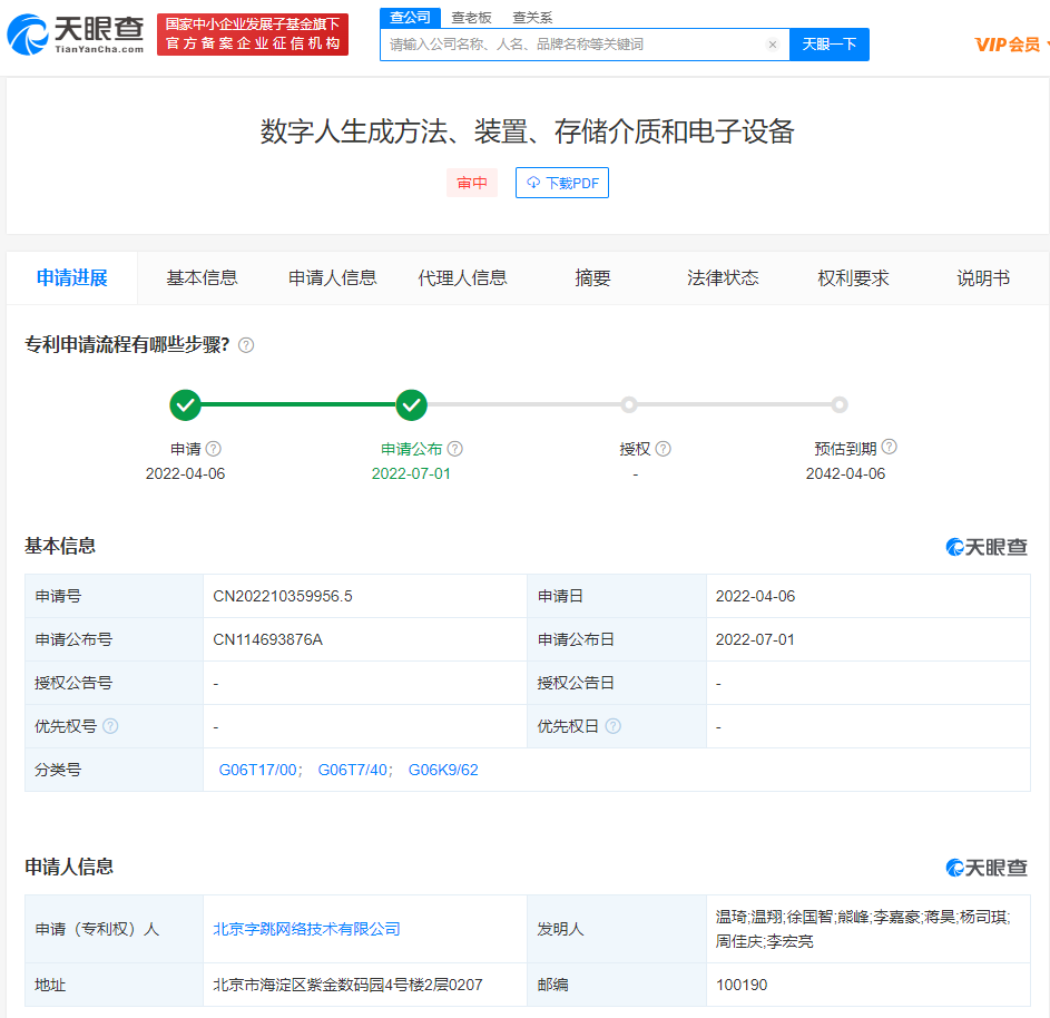 据天眼查App消息,近日,北京字跳网络技术有限公司申请的“数字人生成方法、装置、存储介质和电子设备”专利公布。