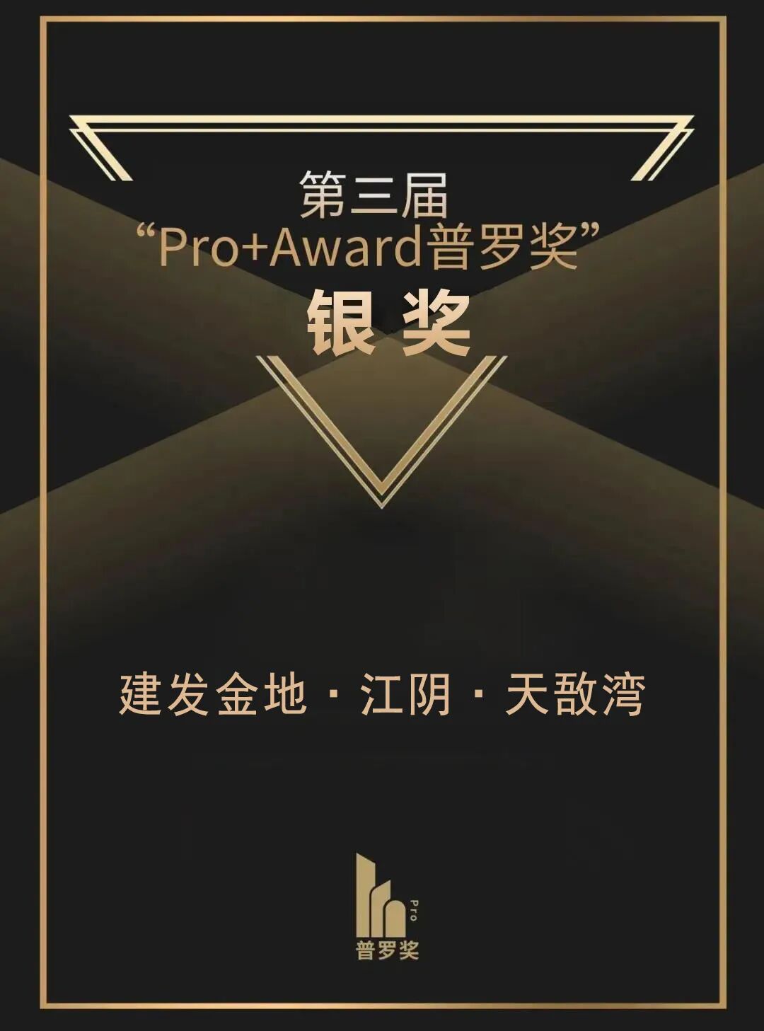 2022年12月30日,由上海市建筑学会地产建筑师分会、上海建实建筑科技发展基金会主办,AIA上海(美国建筑师学会上海)、BRE(英国建筑研究院中国分院)协办的第三届Pro+Award普罗奖公示获奖敏感。都易设计的建发金地·江阴·天敔湾荣获示范区银奖。