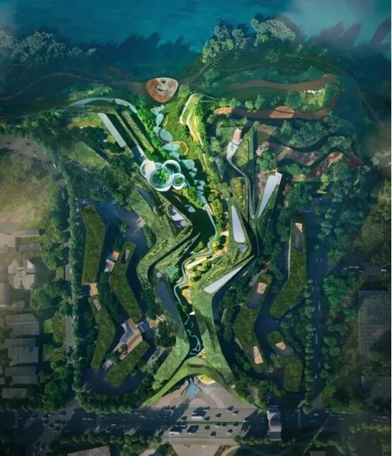 将建筑精心镌刻在自然地形之中,以及在整个项目中充分融入自然资源,是环境策略成功的基础。建筑的蜿蜒形态将促进空气流动,大大提升自然通风和热舒适性,并通过规划水道和水景的蒸发冷却进一步提升舒适度。