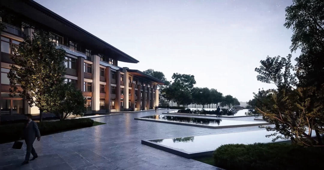 在中式的立面设计中融入了五粮液集团的部分元素以及关于酒文化的意向,虽然能够体现出对五粮液的企业文化,但是建筑整体过于传统,没能对现代语境下的场地和地形作出合理的回应。