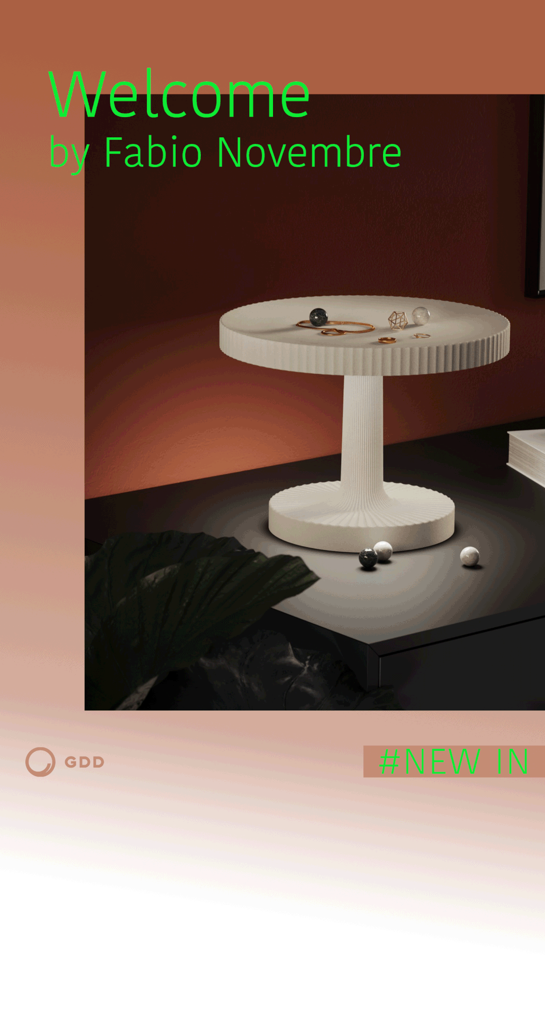 Welcome —— 鬼才设计大师 Fabio Novembre 的最新力作,是他为意大利先锋家具品牌 Driade 打造的一件多功能家居配饰。Welcome 顺应当代居住环境和生活方式,为多样的家居场景和功能需求而设计 —— 它是一台便携式的可充电台灯;也是一件发光的桌面中心装饰;还可以是一个托盘,用来收纳各类小件杂物。