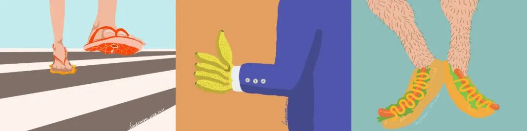 简单的勾勒,鲜明而舒适的配色,是他作品的特色之一,充满了北欧风的简约插画感。这个可能跟他在意大利生活了七八年有关。在意大利的那段时间,他受到当地艺术家和艺术环境影响,在创作的时候更多的是将脑子里的想法用最简单直接的方式表达出来。尽管有时候他会认为自己的脑洞有点让人摸不着头脑,但是他对于画画这件事依然是充满了热情。