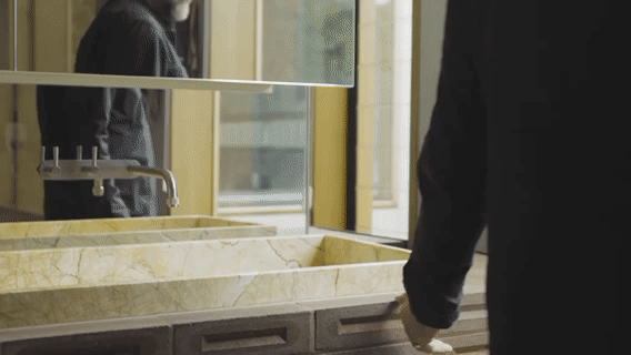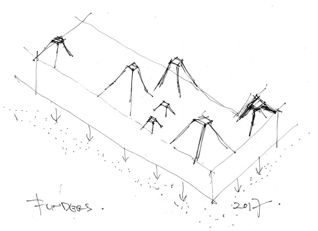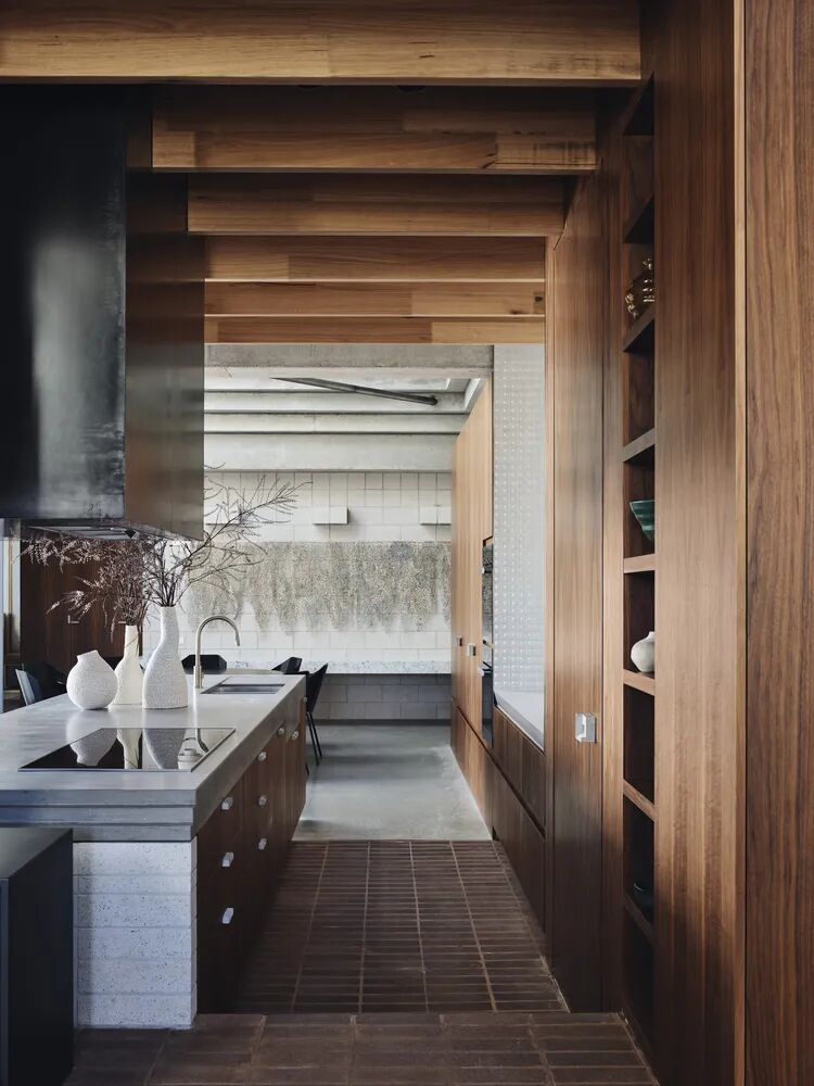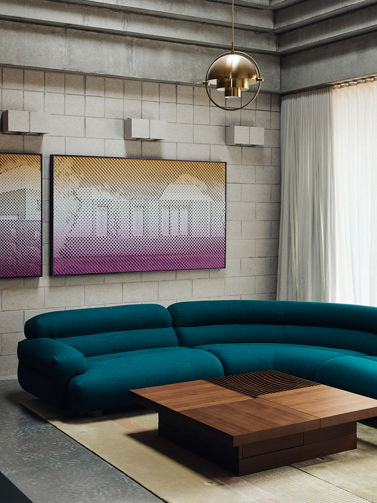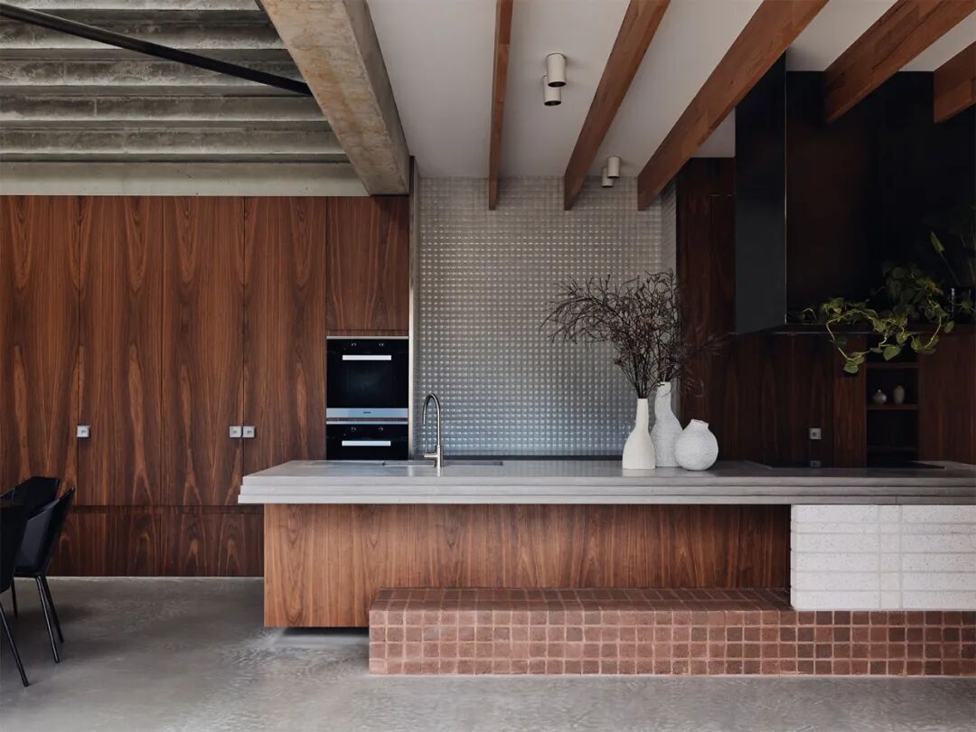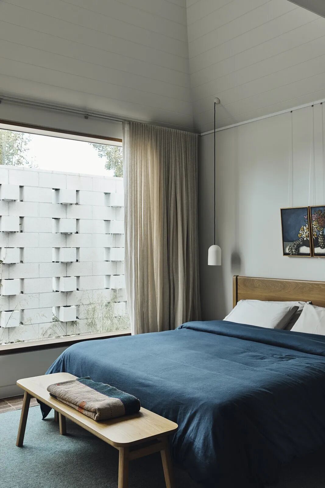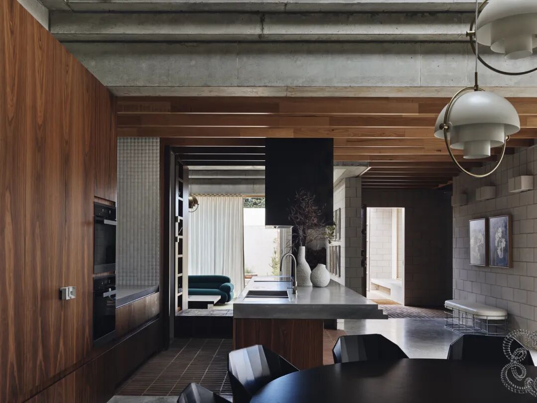 从室内看“金字塔”,是颇为震撼的反向阶梯式混凝土屋顶。它被运用在餐厅、起居室等公共空间内。顶部以玻璃封住,阳光与阶梯产生美妙的光影关系。