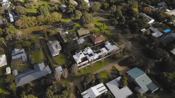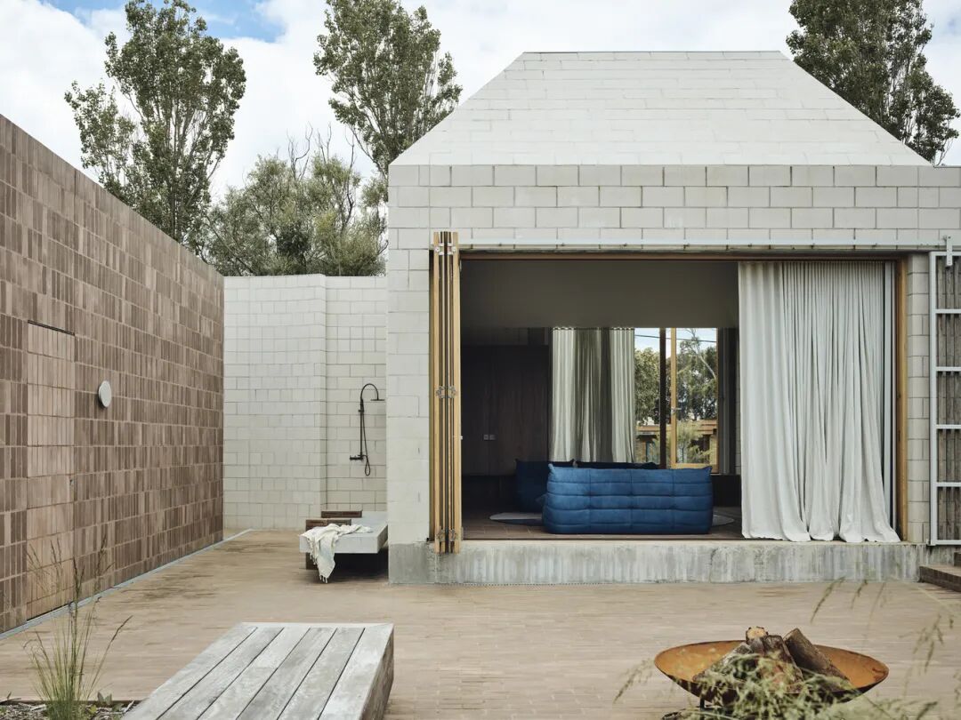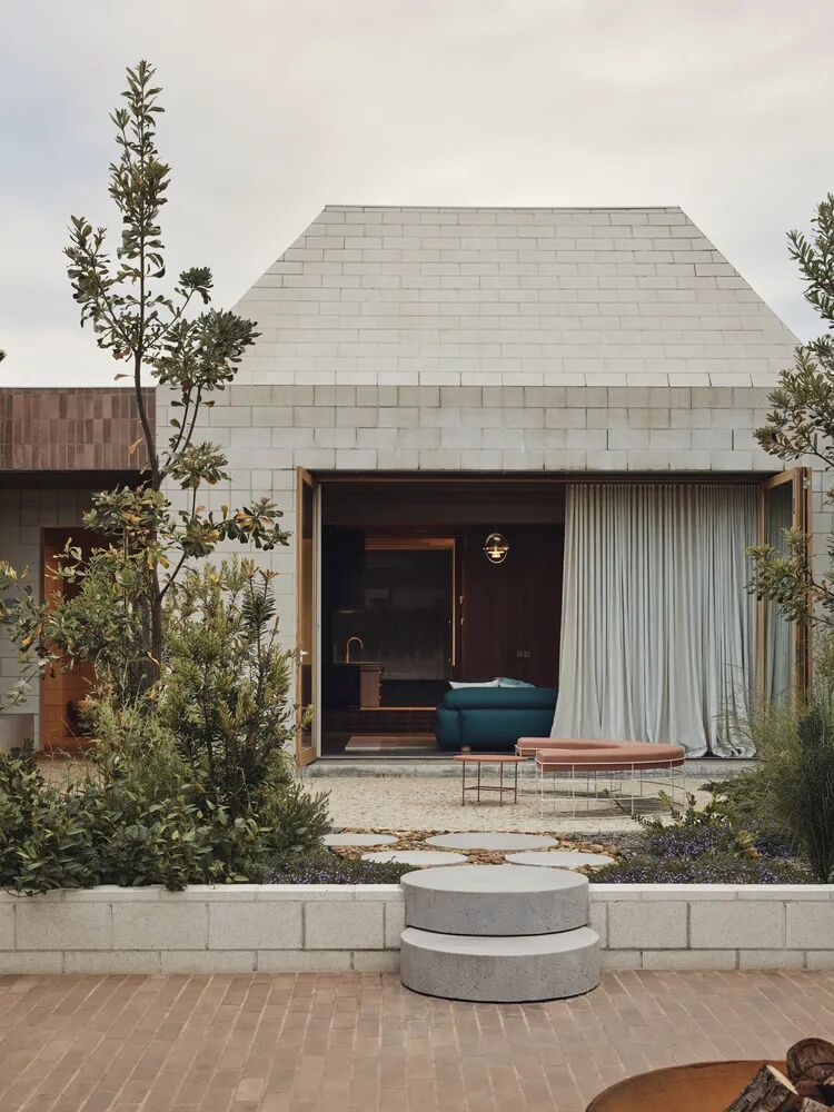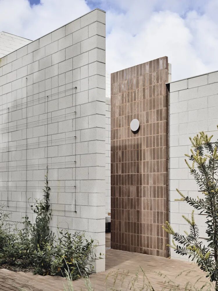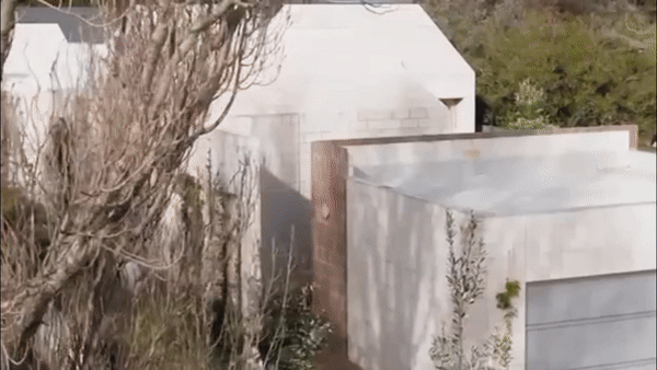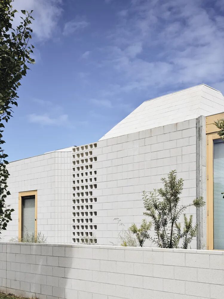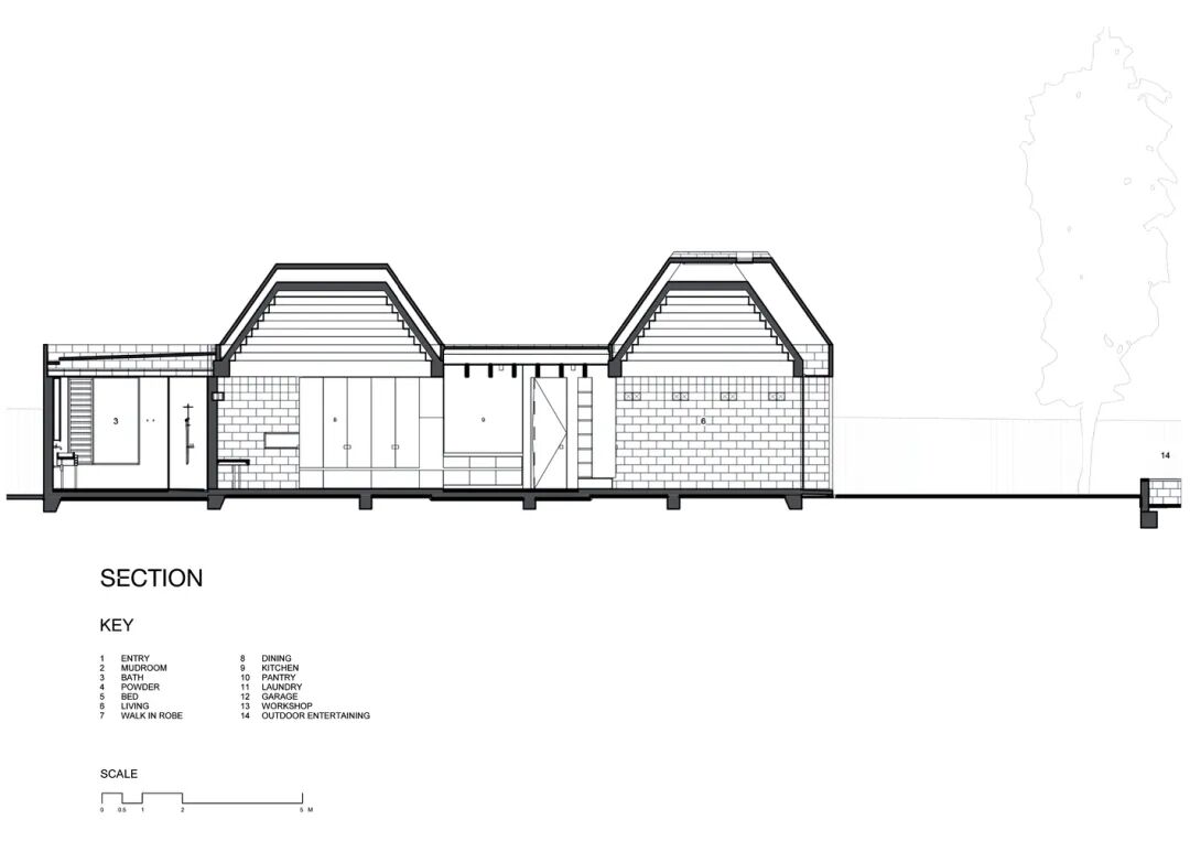 整个建筑面积 350 m²,建筑主体在东面与南面呈现 “L”型,北面为车库和工作室(澳洲坐南朝北),内庭则位于西侧。拥有大小共 6 个“金字塔顶”。从外部看,与周围建筑并不算违和,但极具特色。