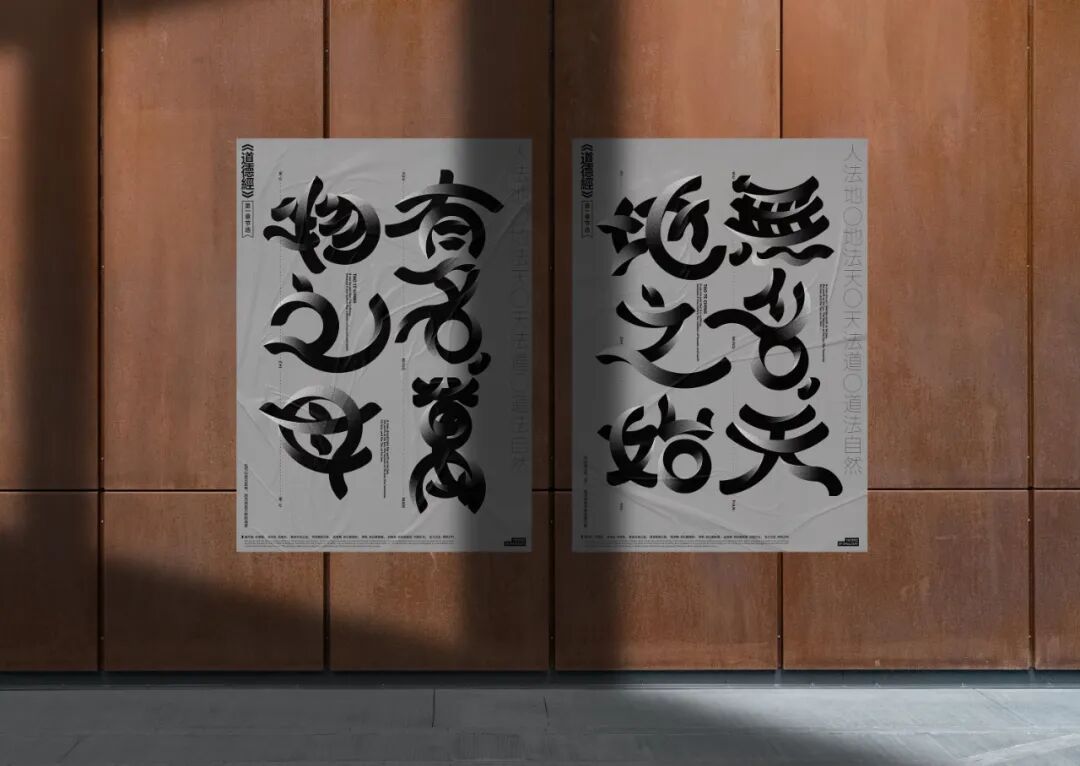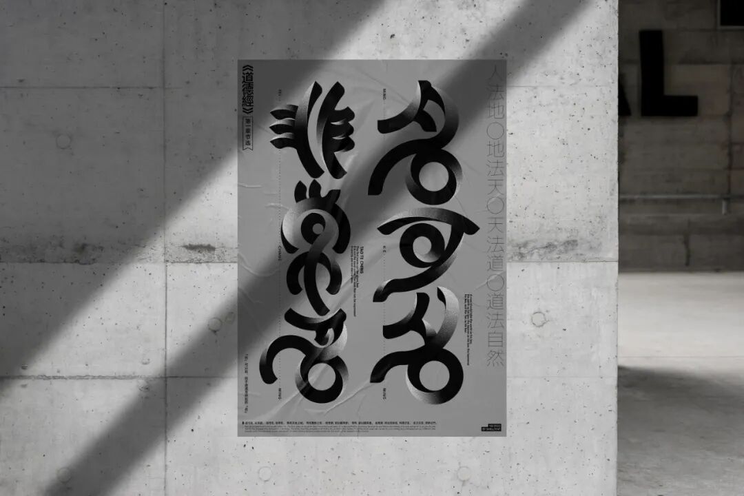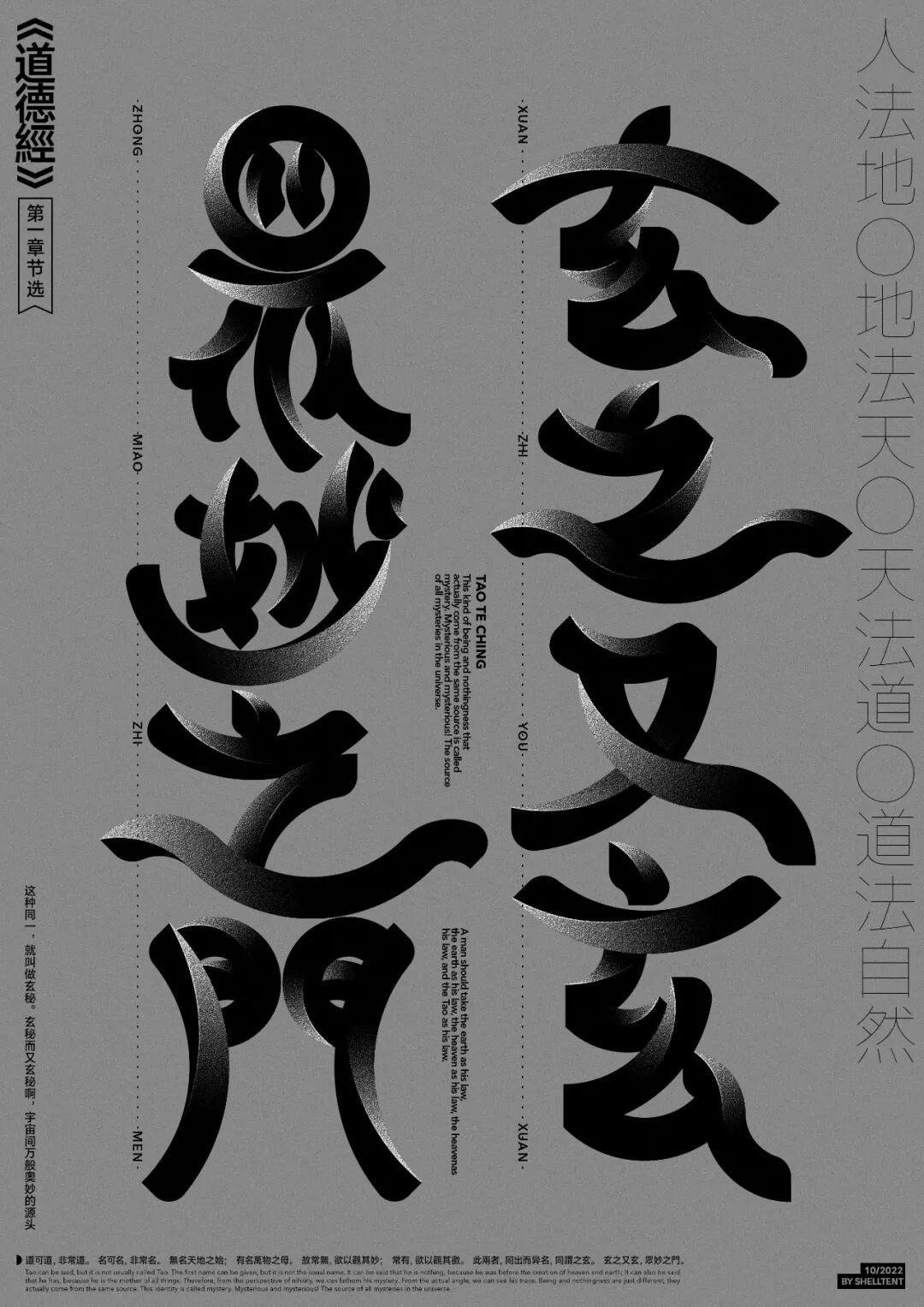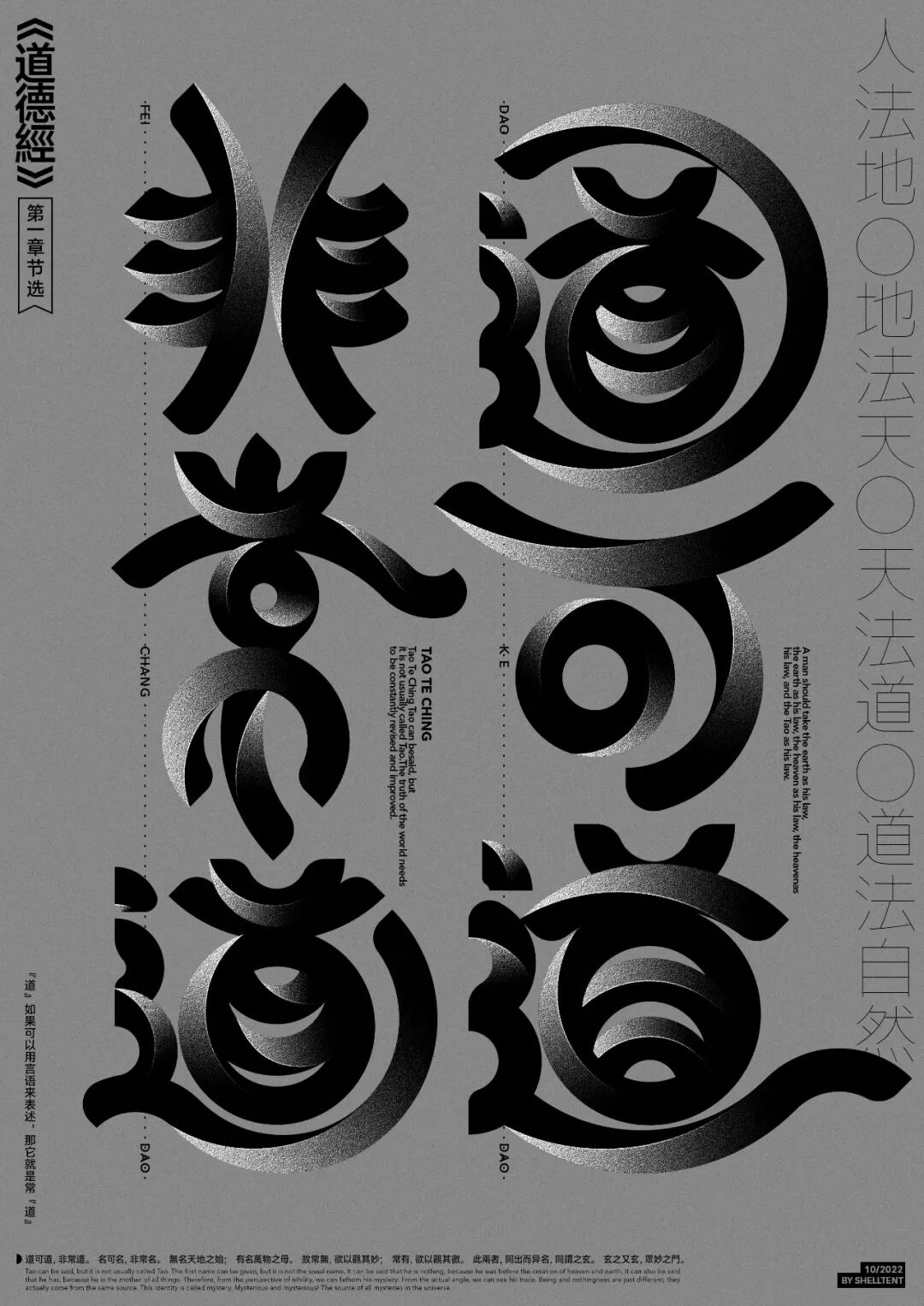主要参考了@俩嘛liamsoso大佬作品的表现手法,之前也在be上看到过类似立体效果,觉得很有表现力和感染力,而其有明有暗的表现效果又恰好对应了阴阳的主题,就尝试研究应用了在字体上。之前也有酷友询问是如何实现的,我的方法是在ai做好字体添加黑白渐变和高光描边后,再在ps正片叠底多几层杂色即可实现。关键点还是具体在哪里添加立体效果和添加的杂色肌理细腻程度,这个需要凭借自己对字体的气质理解来把控。