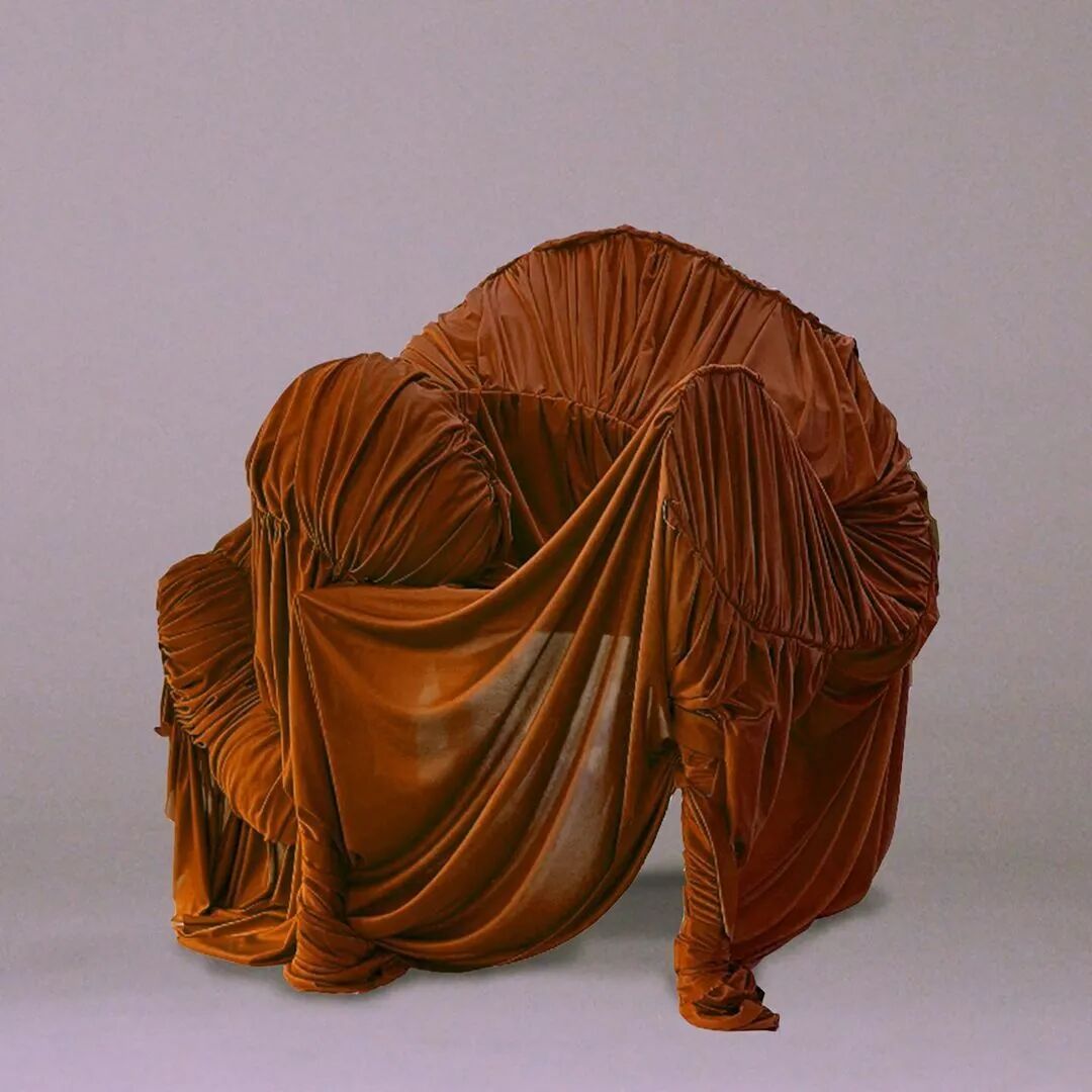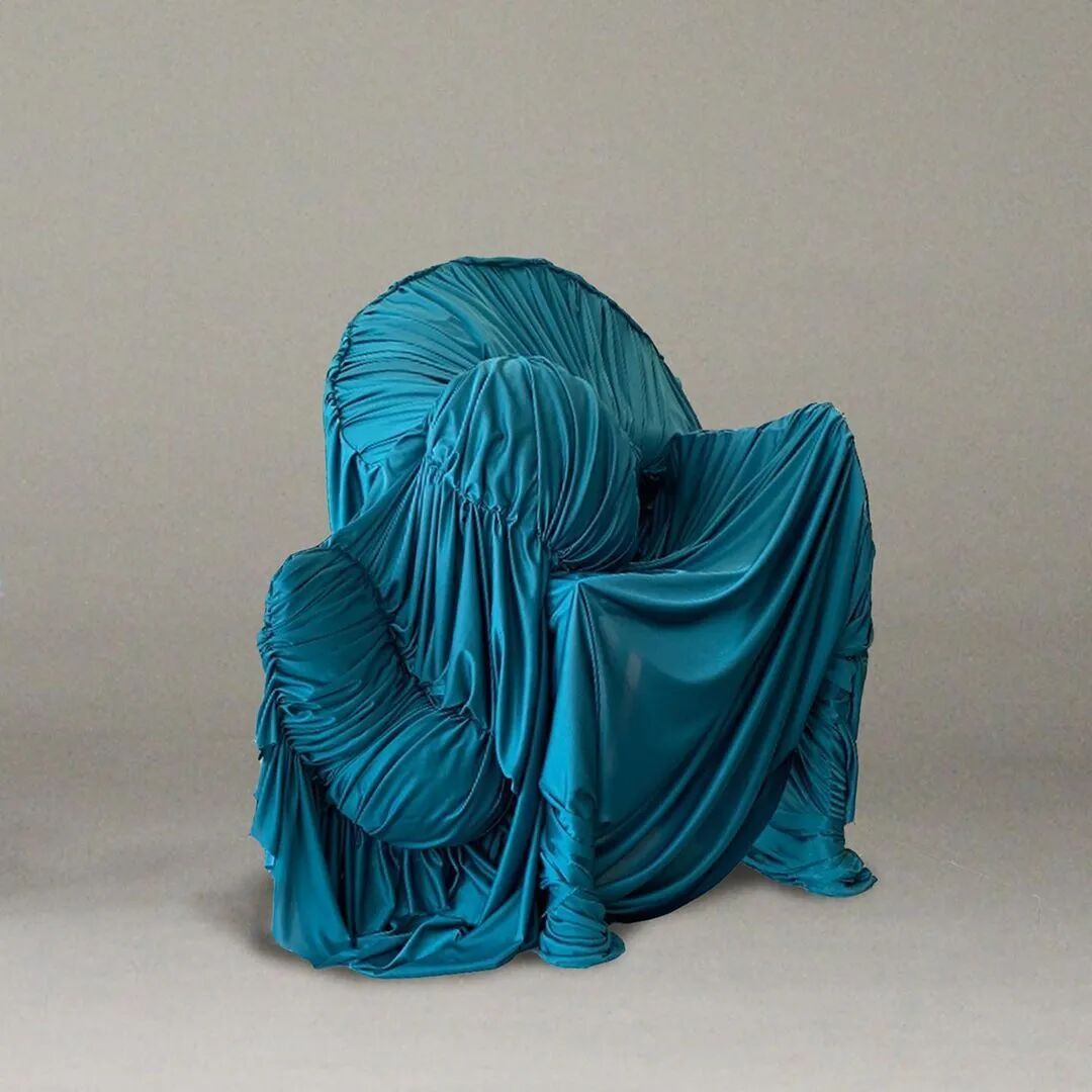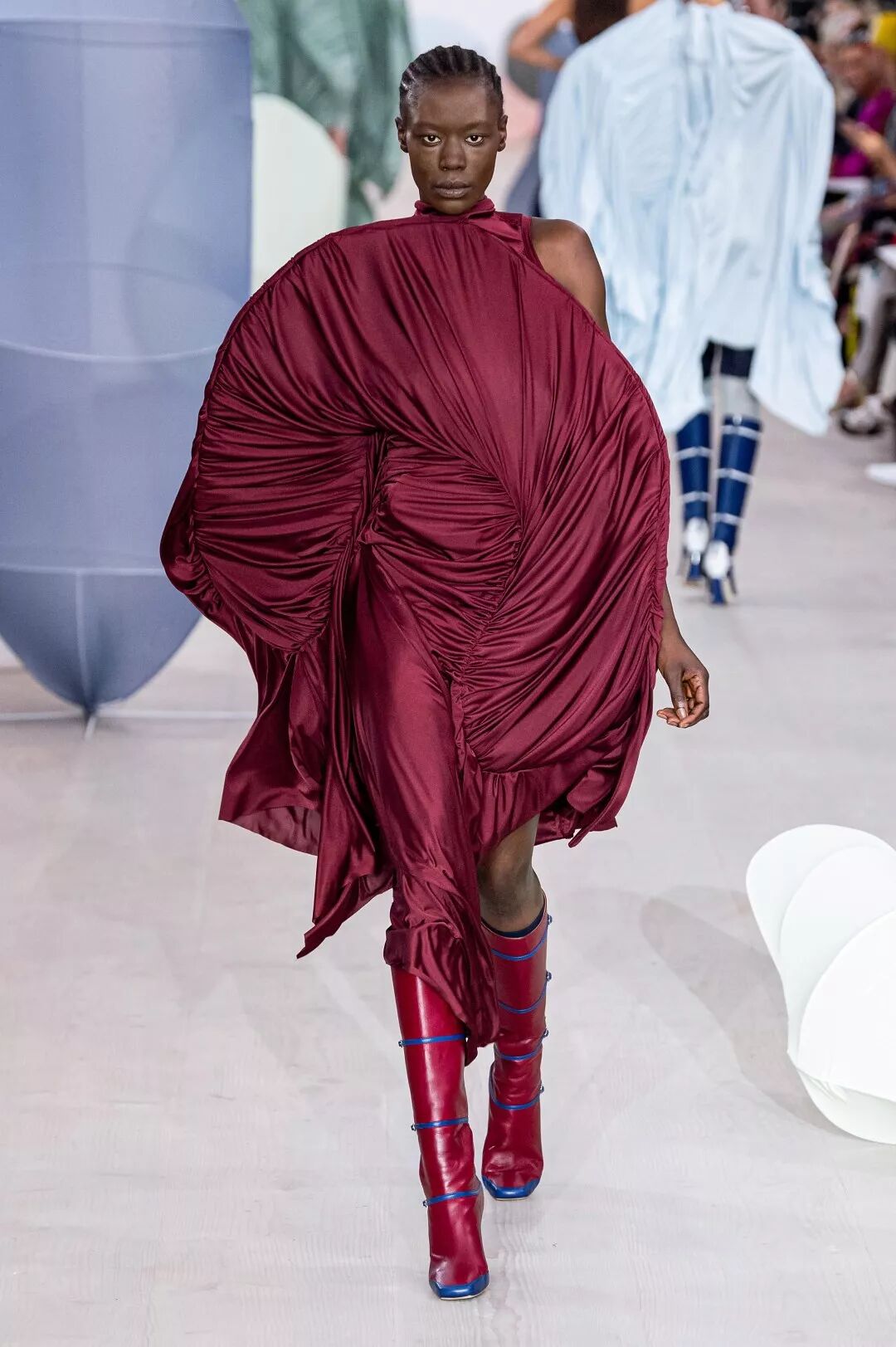 从抽象到具体事物的转化在Richard Malone的设计过程中也有体现,多层面料缠绕呈现出的曲曲折折的三维立体效果。