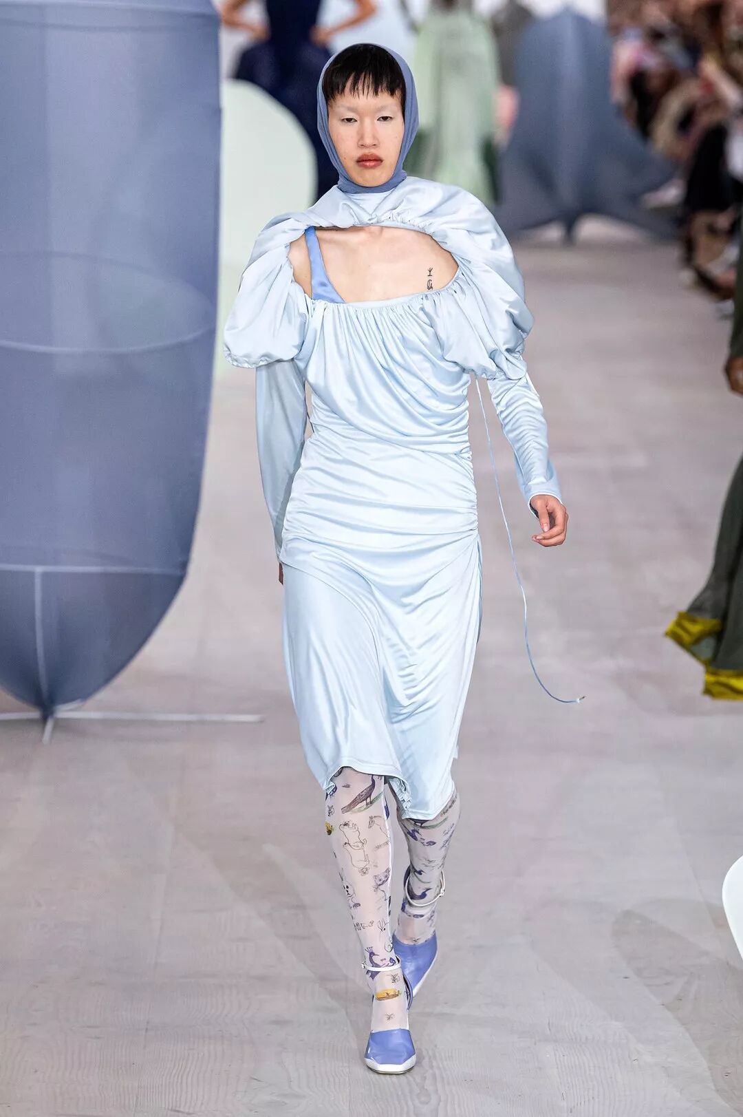 Richard Malone用自己鲜明的设计风格去反映出爱尔兰青少年颓废的现状。通过褶皱、裁剪、缝纫、刺绣去表达青年原始带来的叛逆感,Richard Malone认为“当涉及到可持续性和多样性时,需要对时尚进行分类。”