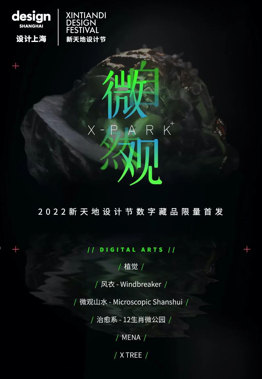 如何让设计突破物理环境,让更多城市里的人感知设计本源?作为XINTIANDI新天地旗下创新版块,DESIGN SOCIAL联合本次设计节六大设计师团队协力打造数字微景观——「X PARK+微观自然」