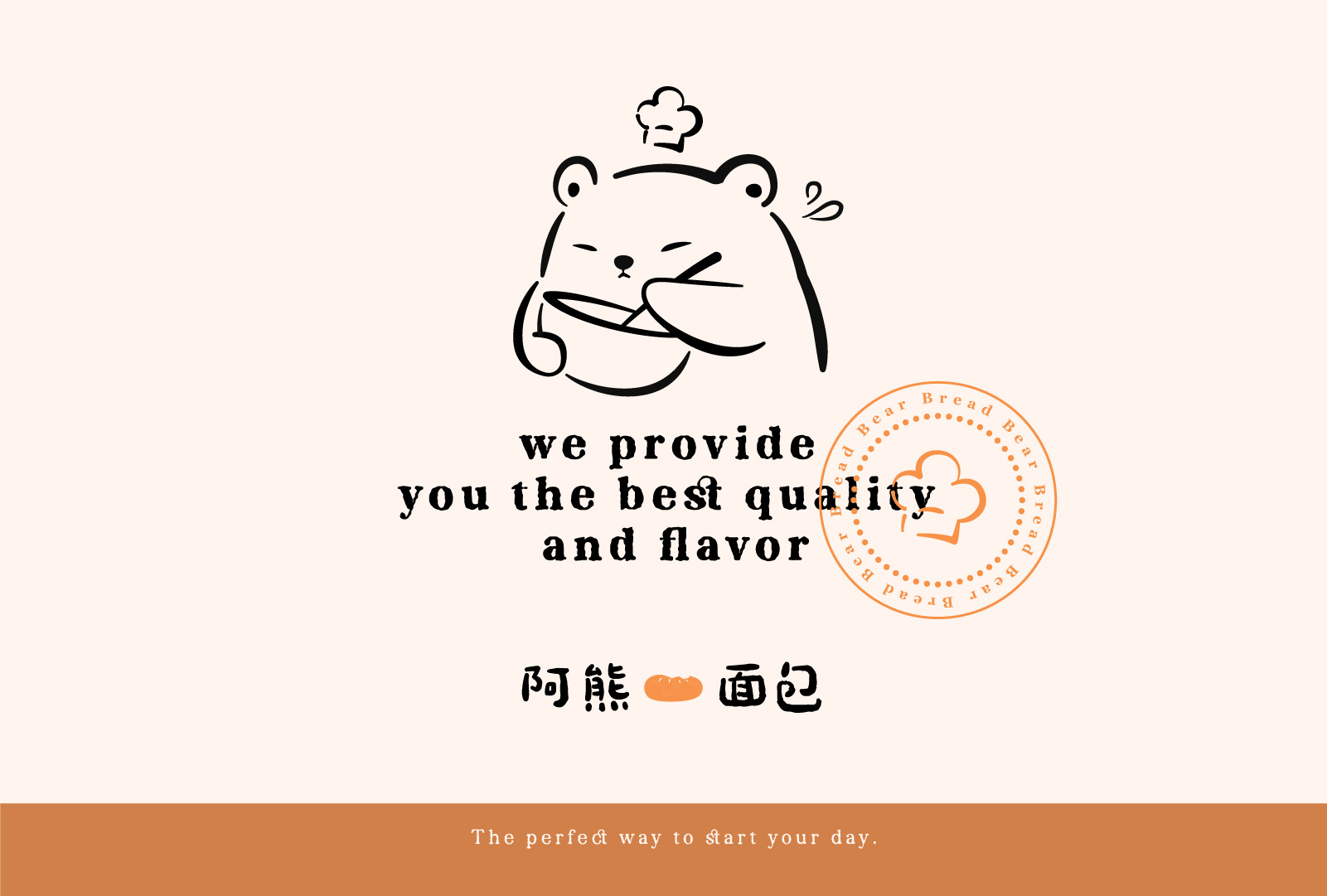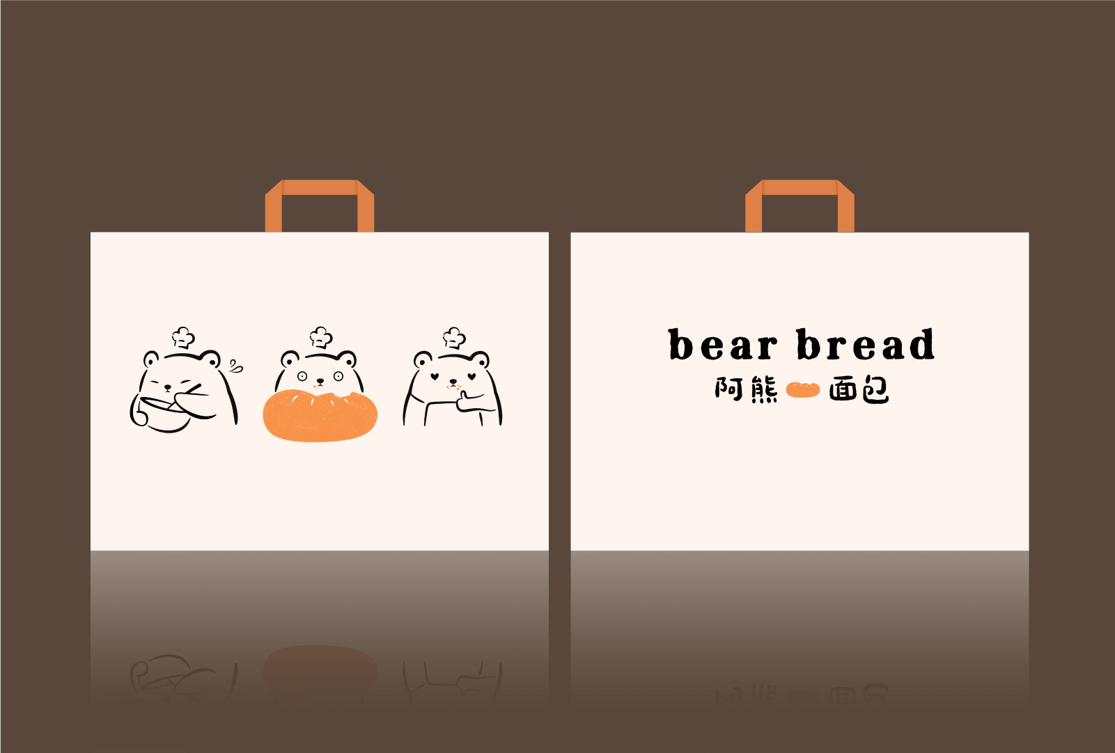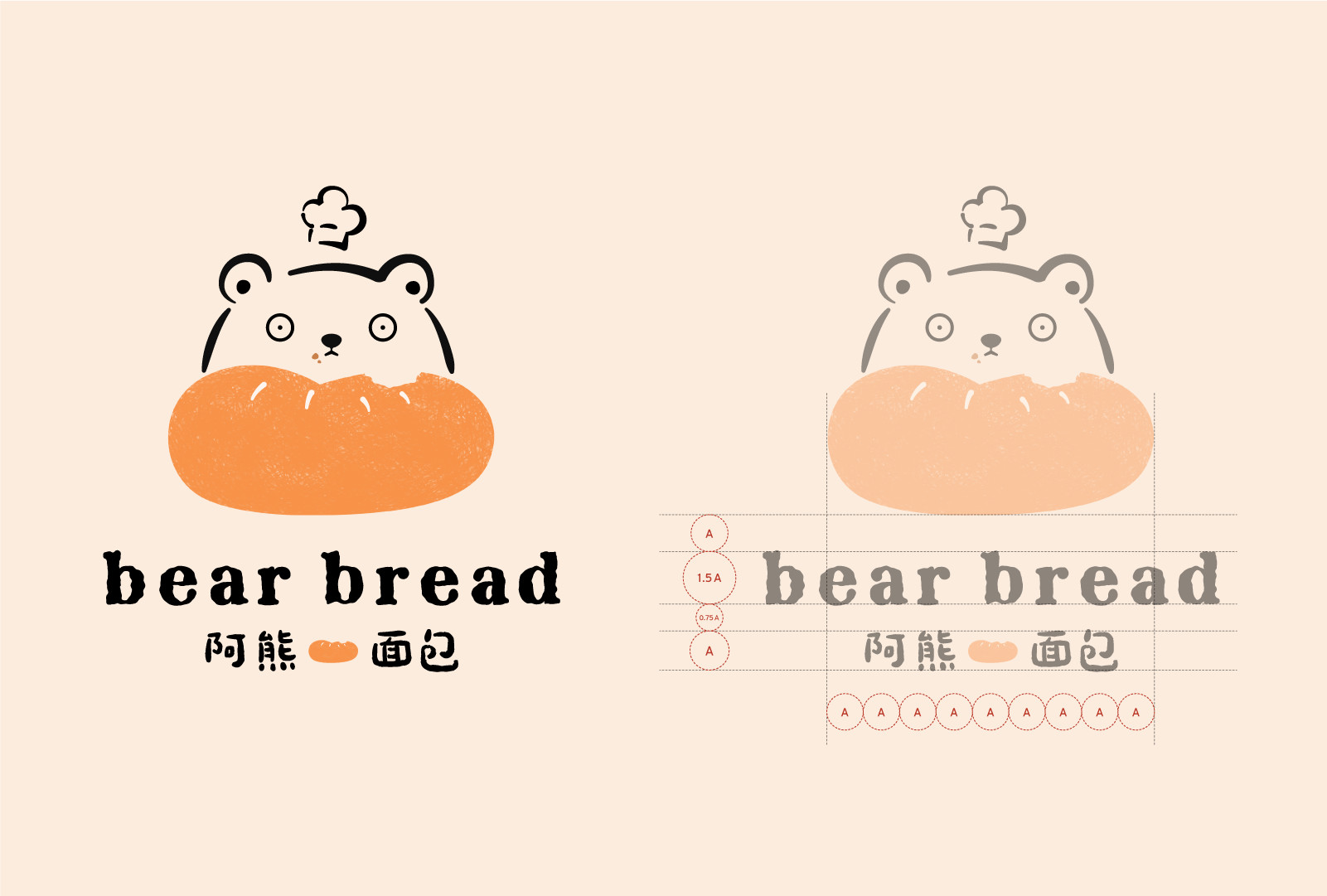 再来看整体的品牌形象设计,品名灵感来自创始人名字中的“雄”字,因而决定取名为阿熊面包,并以