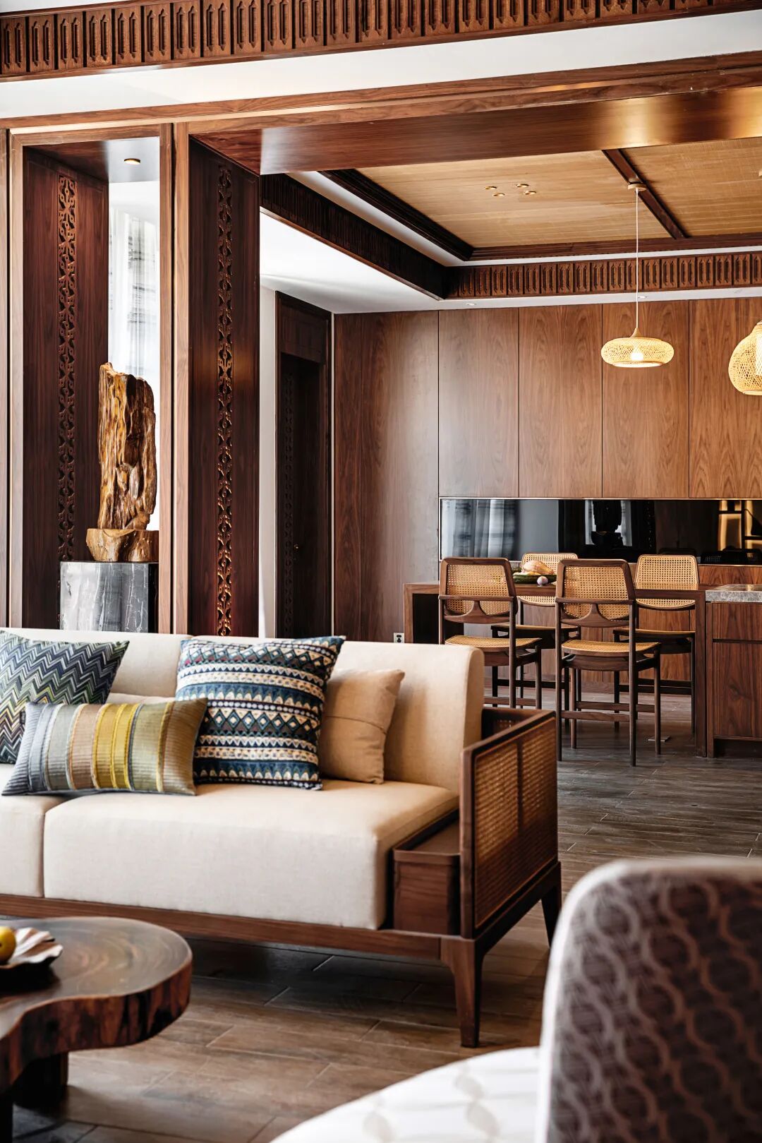传承于东方而不拘泥于东方符号的呈现,欧阳毅将其意象化,以典雅的气质,表达一种东方人追求的谦逊含蓄、内外兼修、宁静致远的品格,以文化驱动设计,让居住空间人格化,呈现一个优雅而不浮华、简约而不乏味、丰富而不张扬的人文空间。