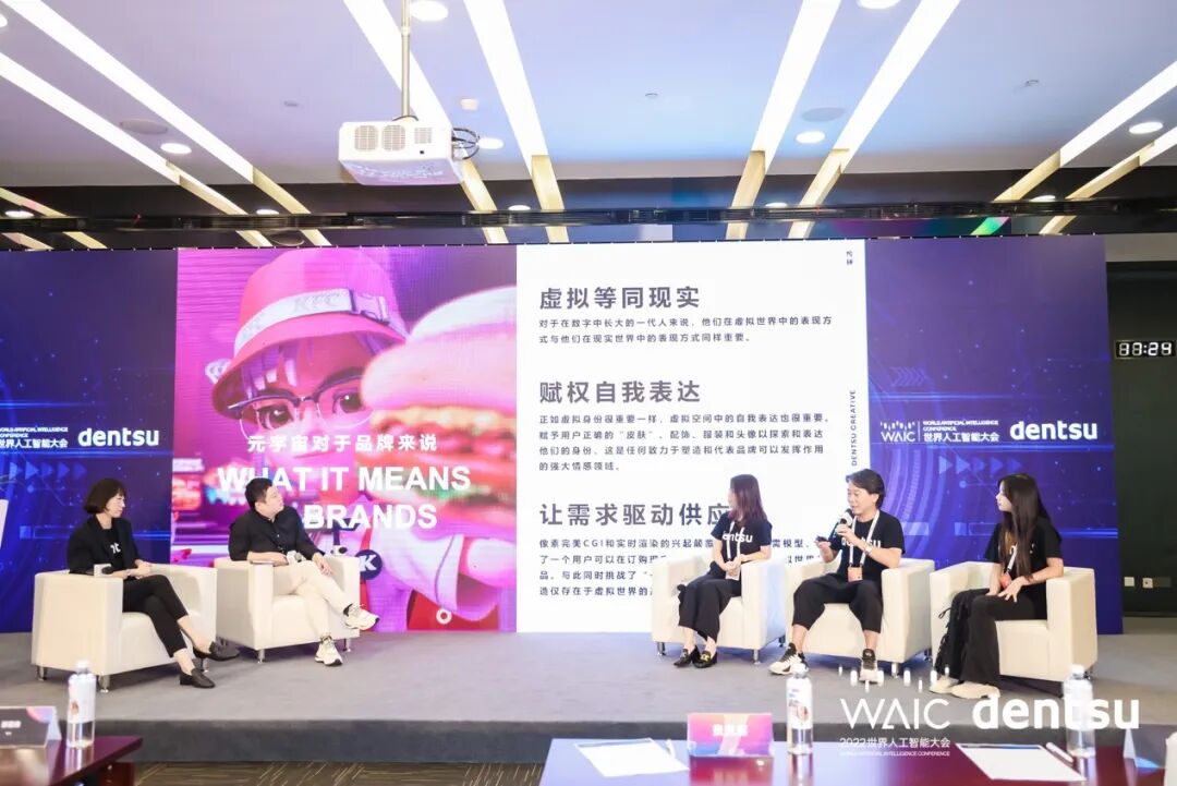 9月2日,2022 世界人工智能大会(WAIC 2022) -“电通AI科技营销论坛”在上海举办。本次论坛聚焦“元宇宙时代品牌与Z世代如何共同刷新营销未来”。电通创意中国区首席创意官陈民辕、电通媒介安布思沛中国区首席执行官李凤龄、电通客户体验管理美库尔中国营销平台负责人张璐,以及电通中国创意先锋力量Dentsu Z团队的龙依梦出席现场,共同探讨“AI+元宇宙”话题,分享元宇宙成功营销案例,一起探索未来品牌创意与营销新模式。