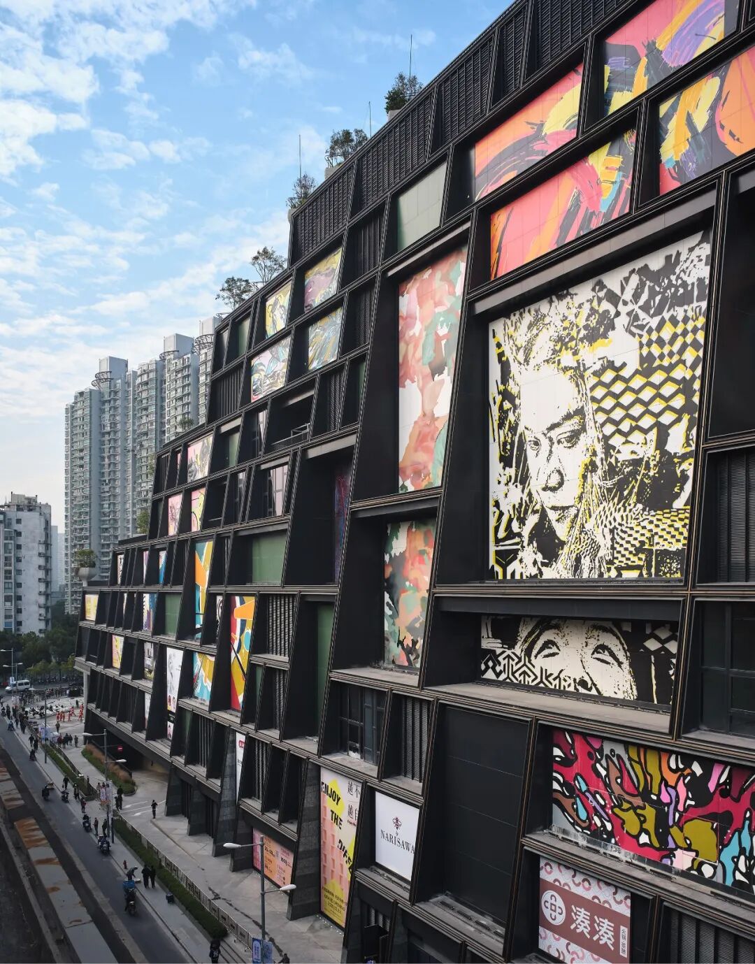 A:在千树(1000 TREES)项目中,我们为本土及国际艺术家预留了展示街头艺术作品的空间,借此整合艺术元素,并向闻名遐迩的M50创意园及莫干山路“涂鸦传统”致敬。这一设计既呼应了场地的重要文化基因,又开启了与本土艺术家的互动。例如,三位当代艺术家为千树(1000 TREES)特别设计了巨型画幅并将其陈列在电梯井之后,为我们带来意想不到的室内视觉盛宴。