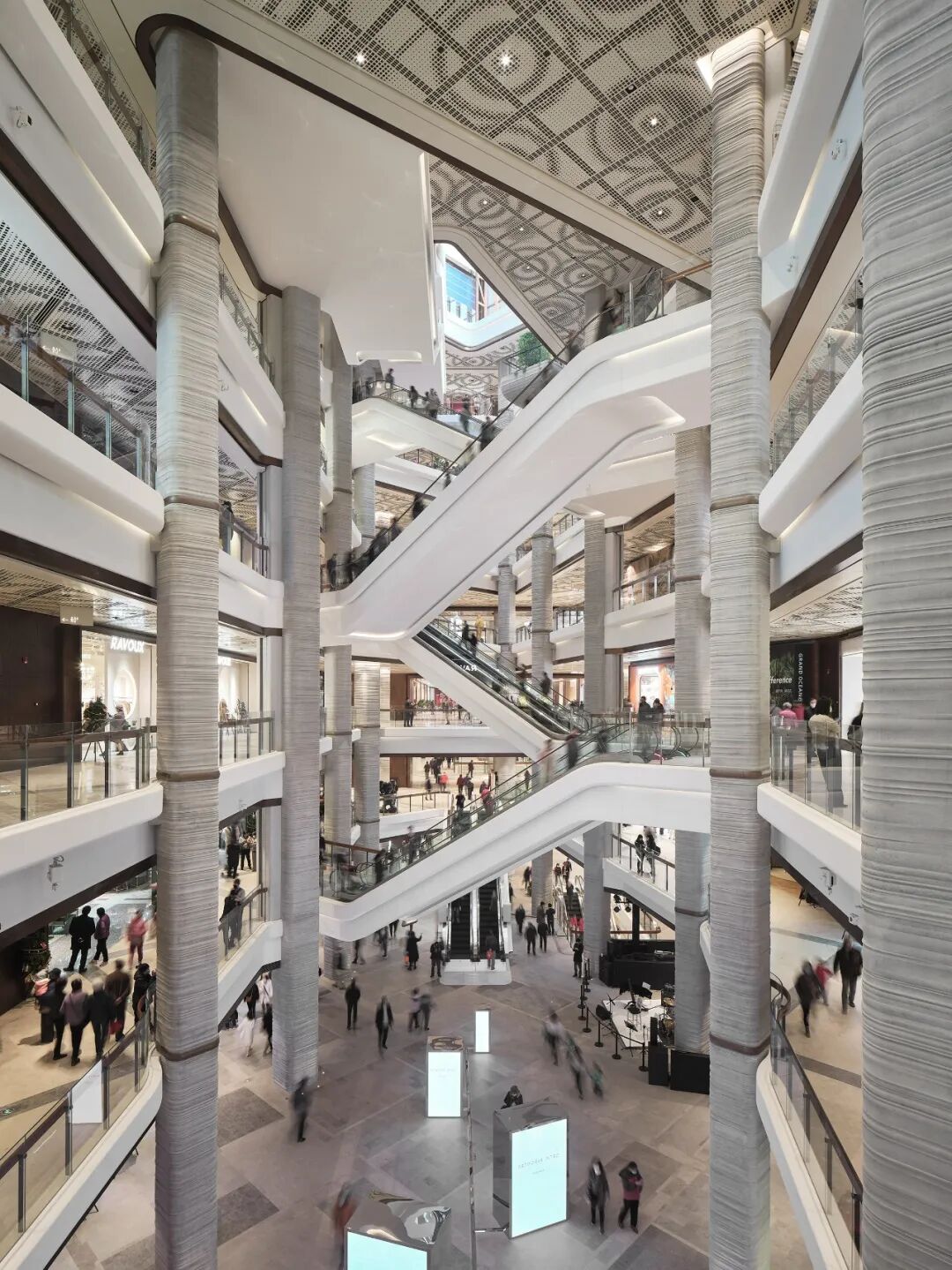 Q:为商业空间注入自然生态的设计概念是如何产生的?为何选择“千树”这样一种表达?这对柱列的美学及功能设计有怎样的影响?