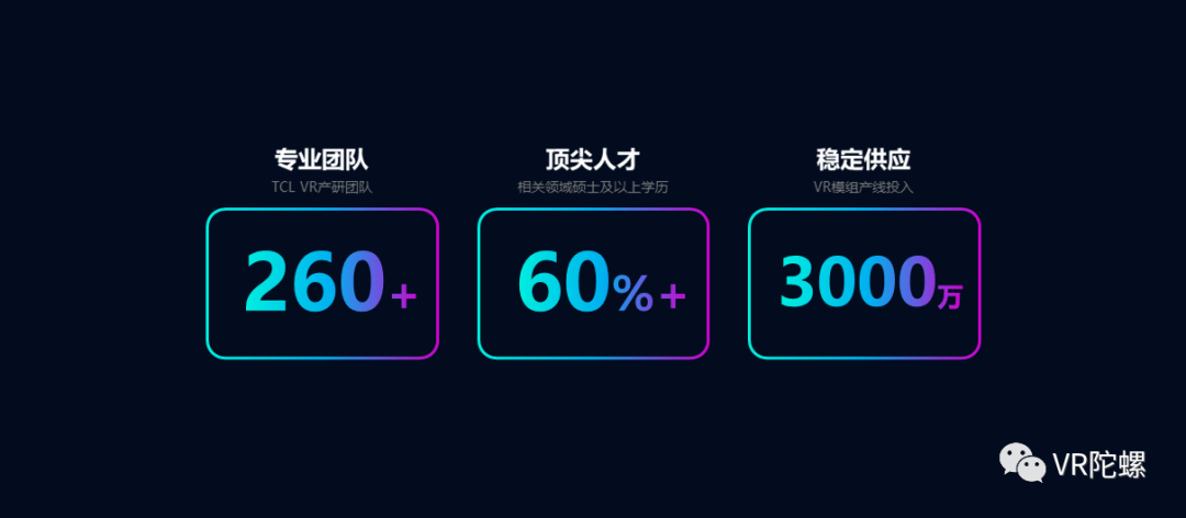 在正式官宣入局VR之前,TCL一直在“苦练内功”,从最早期的手机VR盒子,到2016年VR一体机起步期间都能看到TCL的身影。据了解,TCL每年向全球提供数亿片屏幕,是业内为数不多在供应方面拥有绝对自主权、可全产业链垂直整合的公司。
