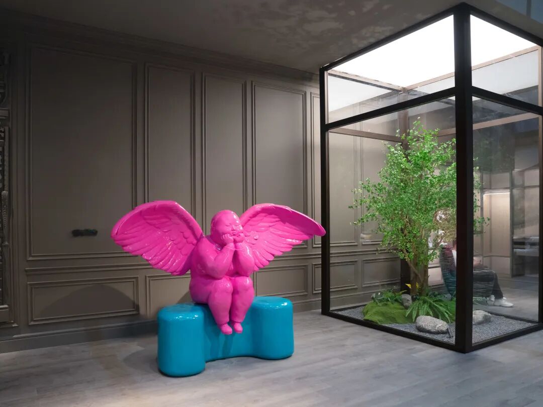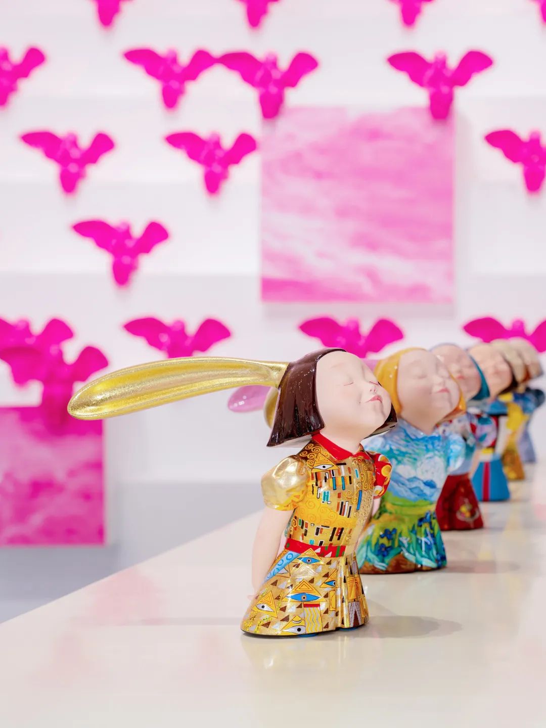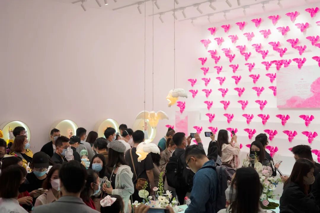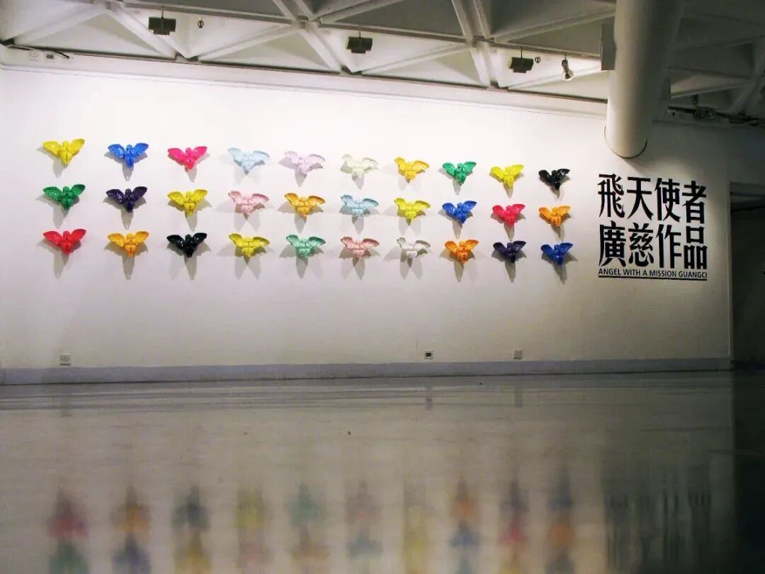 广慈先生的“飞天使者”个人展在香港首次亮相,“当时的展览现场,有一整面墙的‘彩虹天使’。这是当时整个展览的核心,将不同系列串联起来、让观众更好地感知创作的脉络”。色彩缤纷的装置迅速走红、成了香江的“打卡热点”,也成就一段艺术与商业的合作佳话,「稀奇艺术」意料之外地诞生。