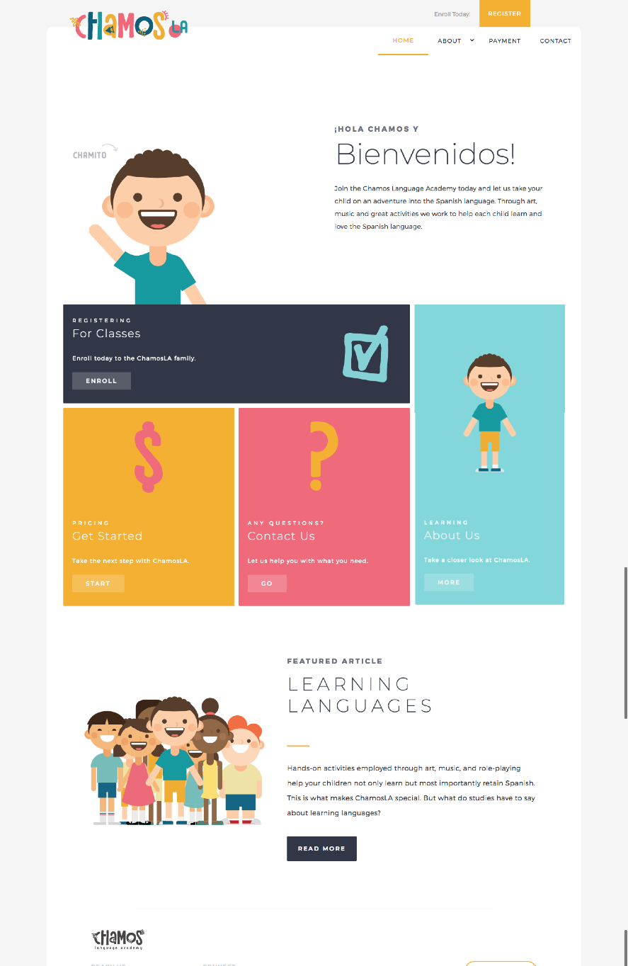 该项目是一个网页设计。Chamos Language Academy是Jacksonville语言学院计划中的一项重要业务,旨在帮助社区年轻人学习并爱上西班牙语。Danielle对其网站进行了重新设计,使它更准确地反应了该企业的品牌个性,进而重建ChamosLA的信心。