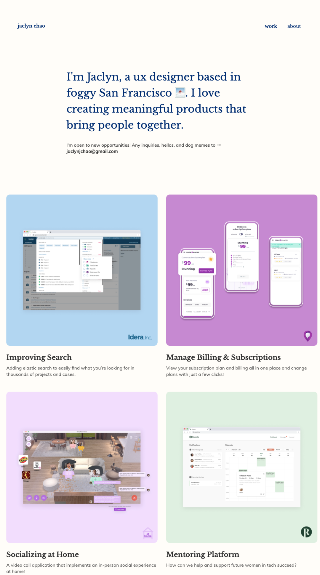 Jaclyn目前在湾区远程工作,她在Idera,Inc.中担任UX/UI设计师,帮助软件的设计与开发。在Idera,她致力于改进并创建以用户为中心的设计,使得一些过时工具现代化,同时为产品构建设计系统。