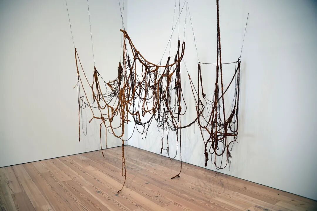 伊娃·海瑟,《无标题》,乳胶、绳子、绳子和金属丝,尺寸可变,惠特尼美国艺术博物馆,纽约,1969–70年