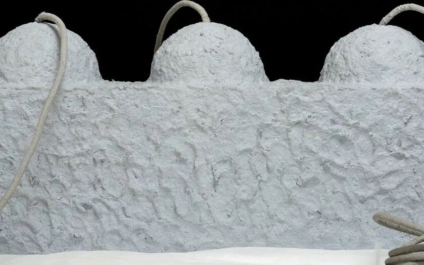 《附录》是海瑟的最后一件混凝纸塑作品之一,到1967年底,她开始广泛地使用橡胶乳胶进行实验,制作测试作品以探索不同的应用技术。在这方面,《附录》中的圆顶很重要,因为它们反映了海瑟后来在乳胶作品中使用的技术的发展。为了创造穹顶,海瑟很可能使用了一个切成两半的硬橡胶球,将其固定在结构上,作为纸浆的模具。当我们用内窥镜从雕塑的背面插入半球体的空腔进行检查,发现每个半球体内部都有一个坚实、光滑、闪亮的表面;这可能是一个商业来源的球,也可能是海瑟自己铸造的。内窥镜调查还显示,一些混凝纸通过绳索的孔转移到了空隙中。一旦混凝纸填满,灰色的丙烯酸乳胶漆就被涂上了,这似乎也流入了内部空隙。
