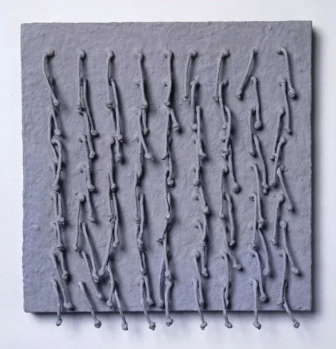在她为《系列艺术》展览撰写的声明中,海瑟讨论了《附录》在表面纹理和重复方面的统一性: