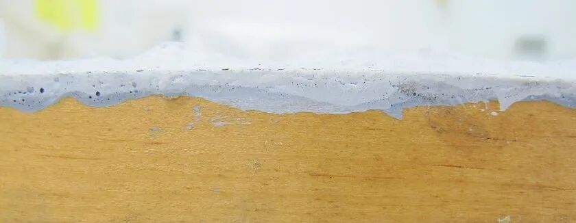 《附录》中一个半球和绳索的细节,在紫外线下拍摄,较浅的区域代表丙烯酸乳液,在此过程中不均匀地刷在绳索上并溅到雕塑的上部木制部分