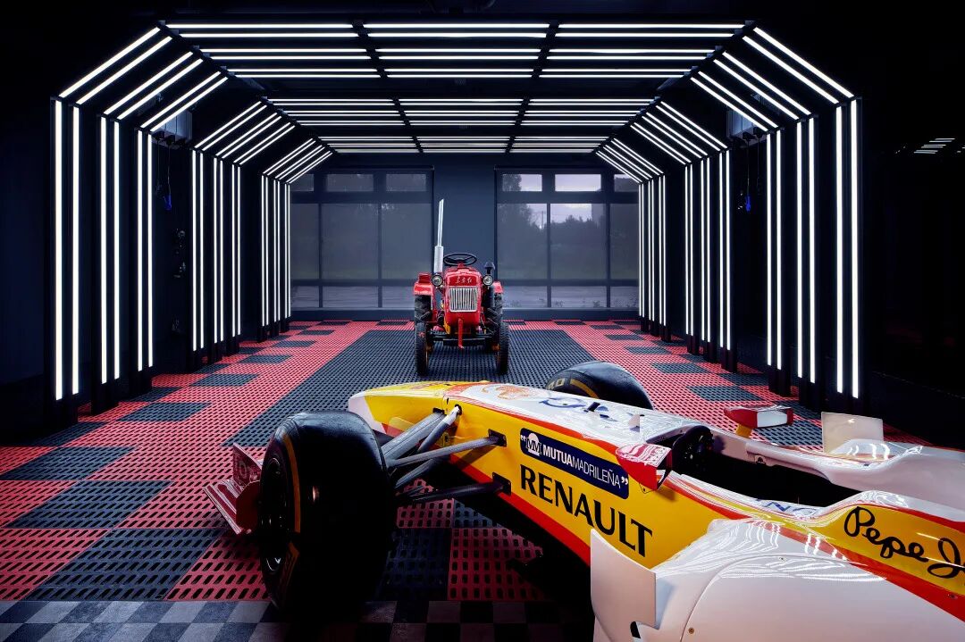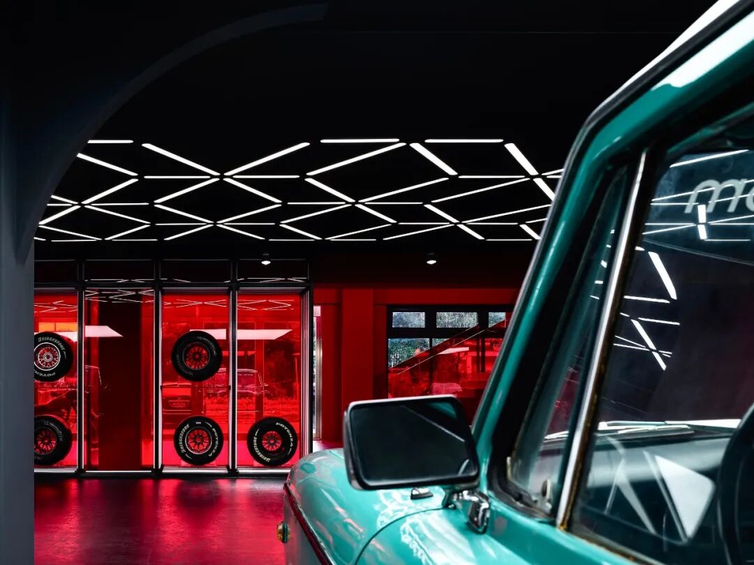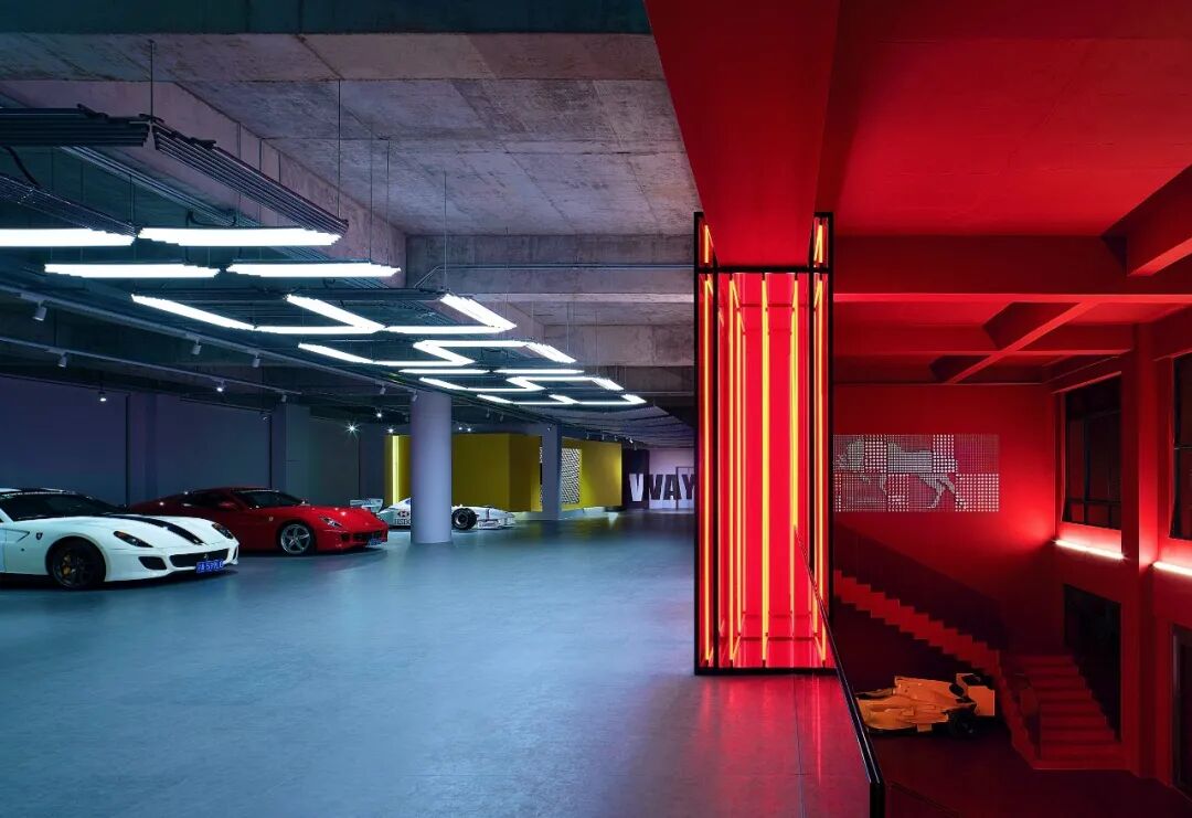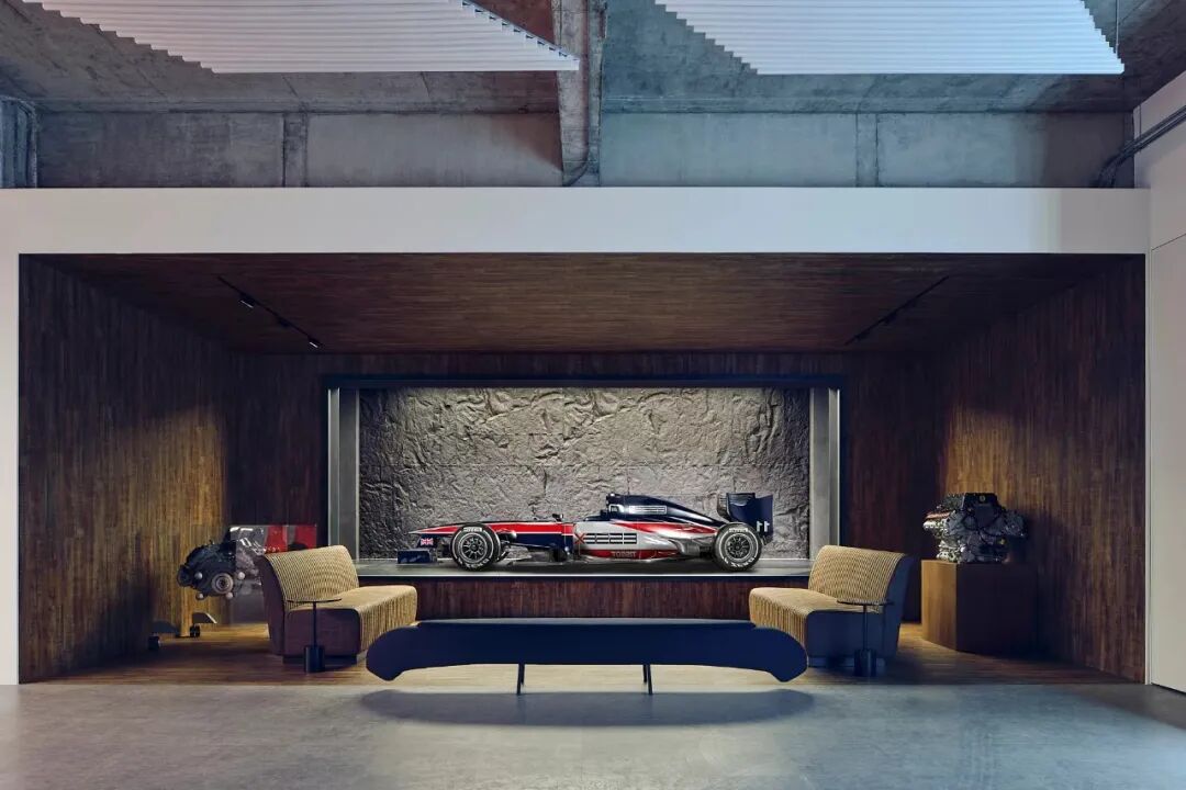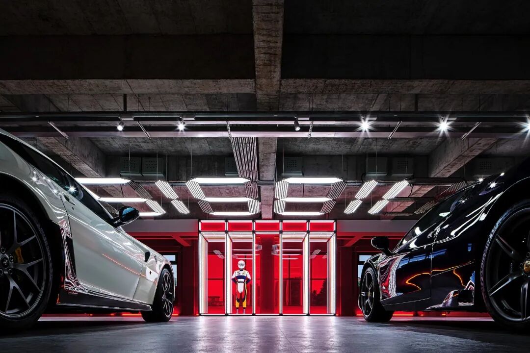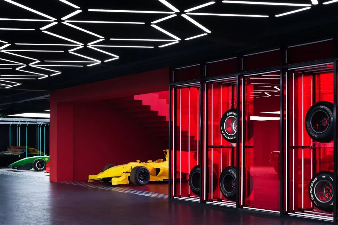 在这个项目里,功能与美是起码的,李楠对客户需求同频解读后超频落地,回过头来降维打击自然游刃有余。空间内车的生命感及与人的连接感扑面而来:舒马赫签名款赛车战服、上千个TAKARATOMY、MAISTO车模、法拉利V12引擎都如艺术珍品般陈列,整个空间沉浸感非常强。