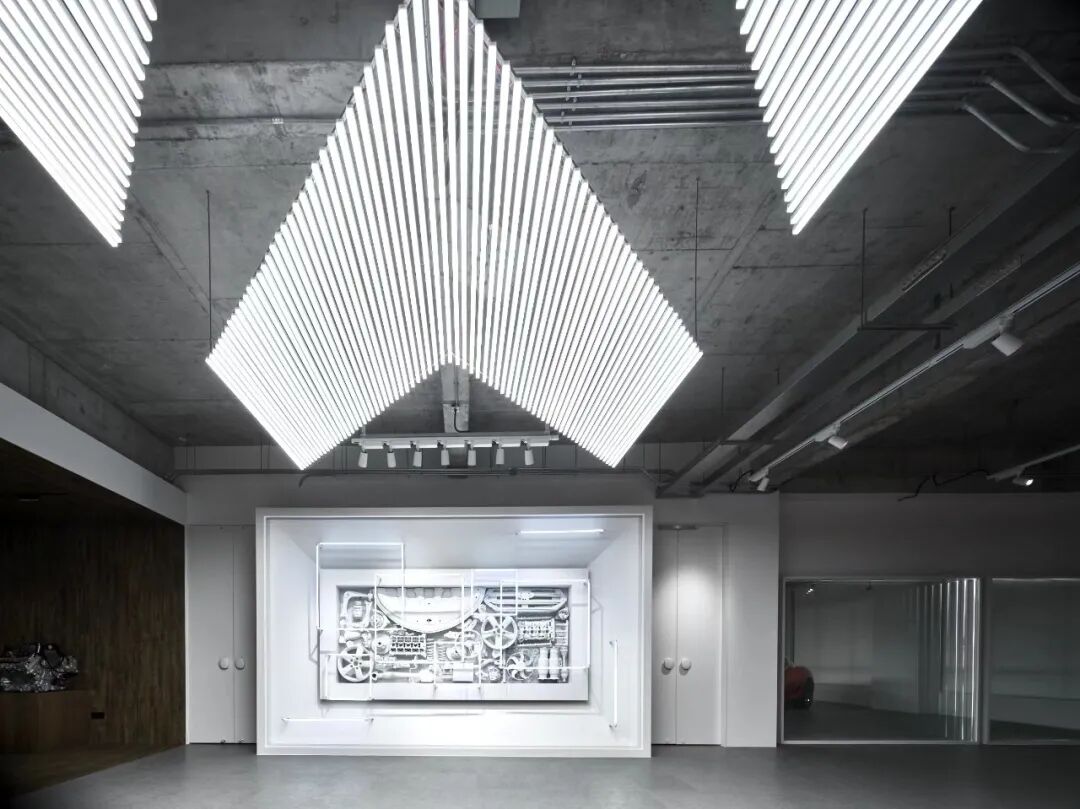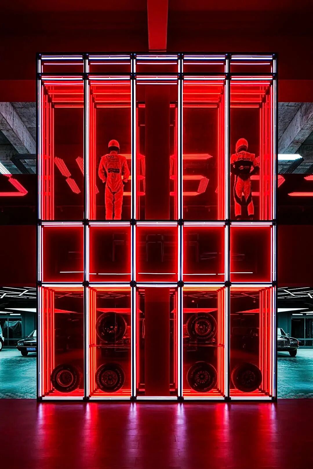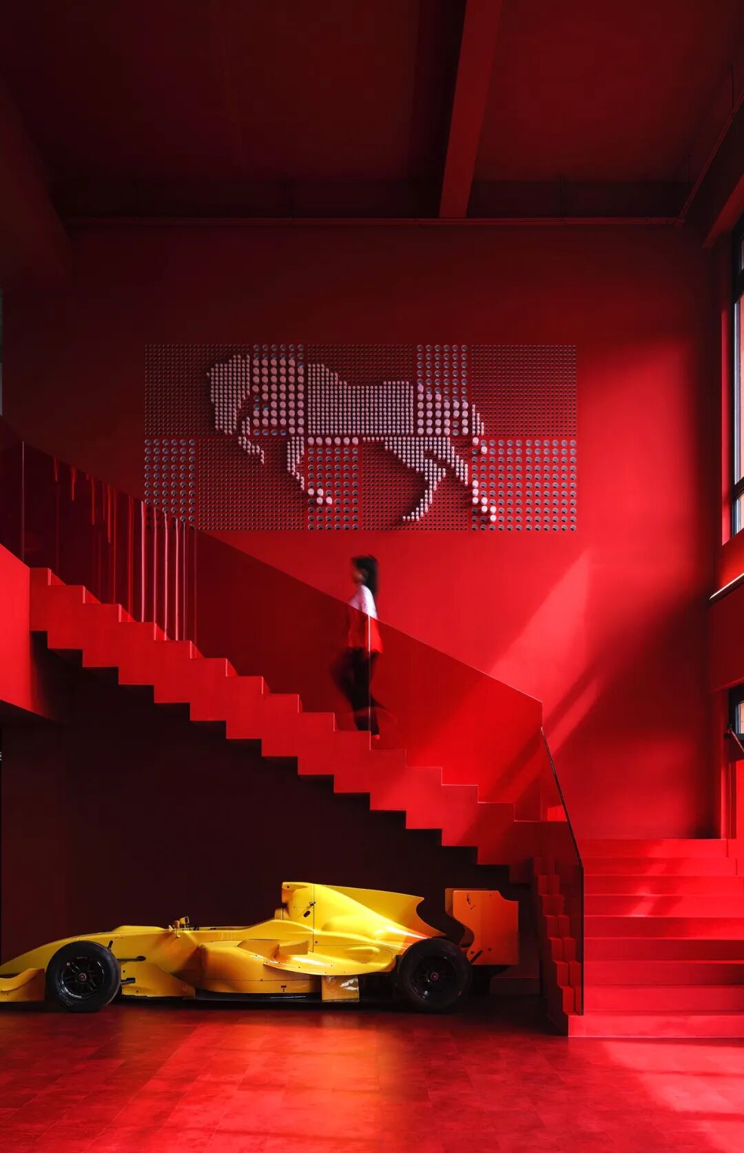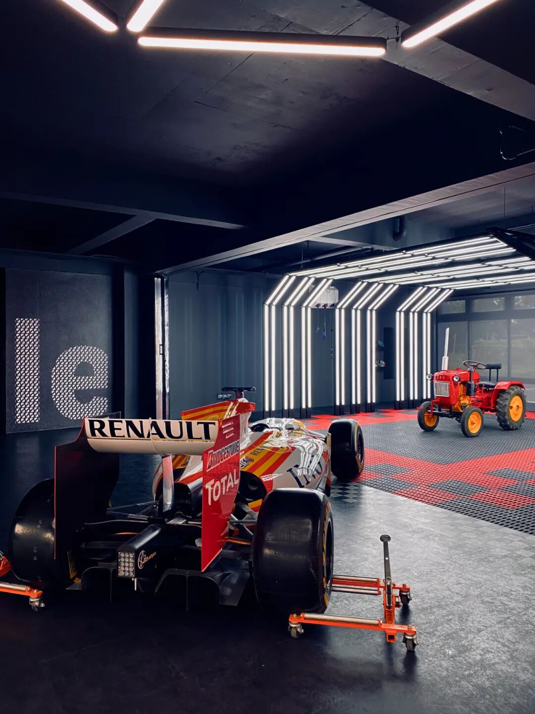 在这个项目里,功能与美是起码的,李楠对客户需求同频解读后超频落地,回过头来降维打击自然游刃有余。空间内车的生命感及与人的连接感扑面而来:舒马赫签名款赛车战服、上千个TAKARATOMY、MAISTO车模、法拉利V12引擎都如艺术珍品般陈列,整个空间沉浸感非常强。