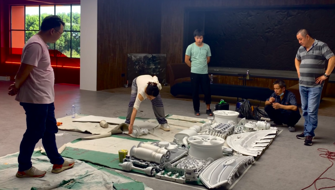 “因为疫情缩减预算,客户取消了本来海外定制的几件艺术品,没了艺术品的空间缺少灵魂,我只能亲自下手。比如这个挂满汽车配件的墙,前后耗时一个月,跑遍上海远近大小汽配厂,报废车看了十几辆,最终完成这个装置作品 The CArST——