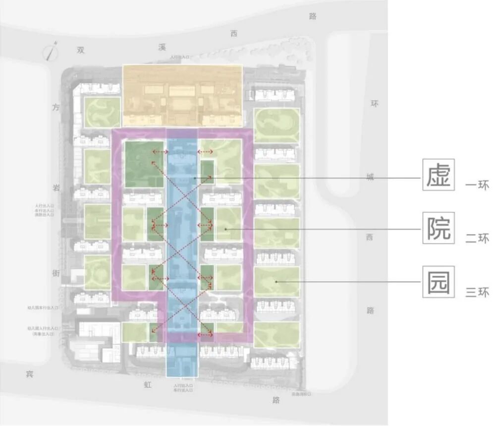 1」以保留外部自然林界营造社区与城市的天然过度,实现社区与城市的链接。