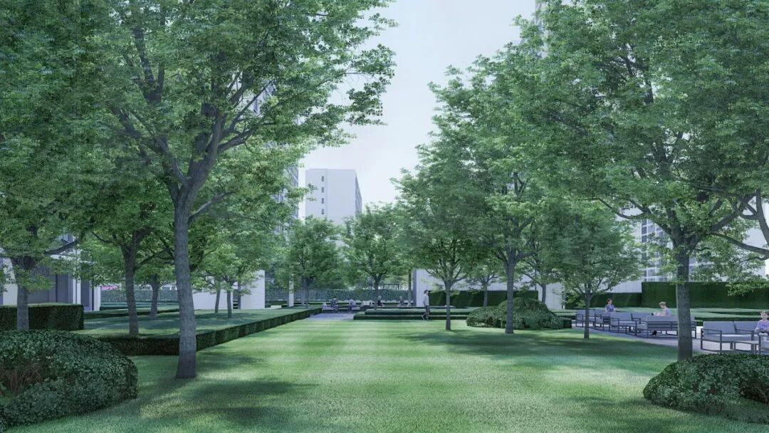 我们希望草坪空间可以成为社群生活聚拢的交互场景,草坪婚礼、露天影院等活动丰富社区生活多元化。