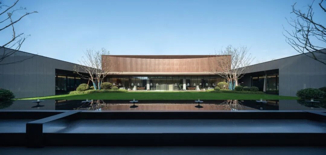 后场过渡庭院:婀娜的乌桕林下是片岩堆叠模拟出的溪流质感,清晰的触感将度假式归家推入高潮,树影、光影、人影在这里交织,闲坐其间,微风拂过耳畔、林下流转着斑驳光影。