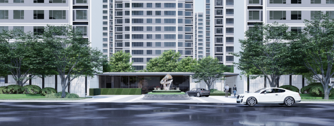以内退入口指引归家之路,阳光洒落植物形成的光影效果,呼应了社区入口空间“映翠”的主题,营造出具有画面感的归家空间。水景与雕塑的设置,提升社区入口的品质感,给社区归家之旅再添一份高雅的气质,极力打造“酒店式入口”般的尊贵感受。