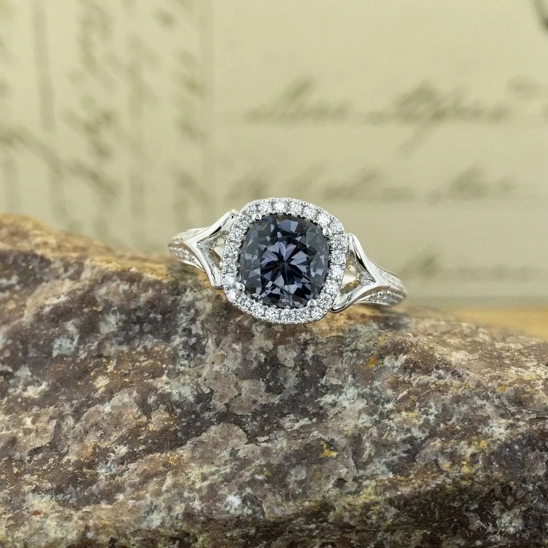 灰色尖晶石的颜色范围,从青铜灰色到钢灰色再到深木炭灰色都有。由于尖晶石含有丰富的微量矿物元素,这些元素经常会让灰色的尖晶石带有轻微的蓝色调和紫色调,给宝石增添一点额外的魅力。