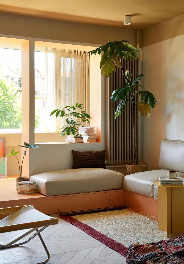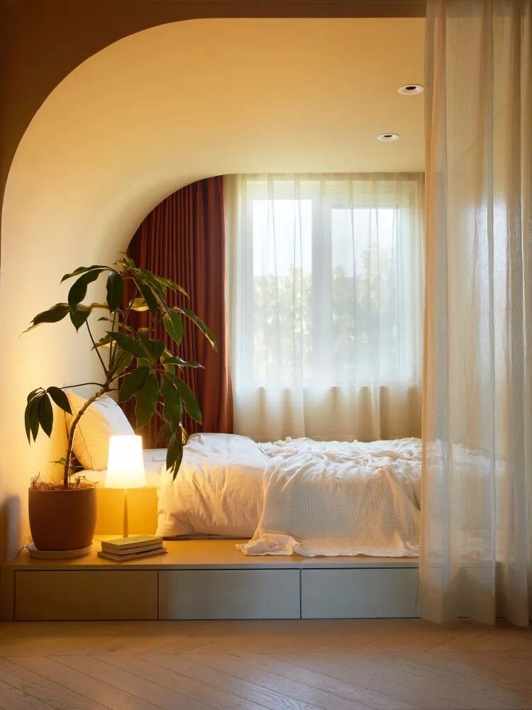 同时,艾比喜欢挑战各种新鲜事物,她的兴趣广泛,不仅爱好读书、调香、瑜伽,还在装修期间爱上了颂钵,搬进新家之后又开始养绿植,这些不断拓宽的兴趣爱好都被好好装进了新家。宛如洞穴般有包裹感、穿梭感的温暖空间,将在往后的日子里与主人艾比一同成长、变化,这也是设计师梁彩文期待赋予这个家的包容性。