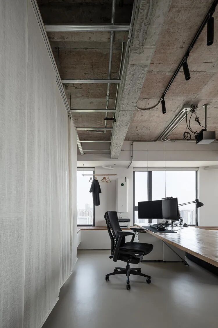 或许你以为,全屋裸露混凝土顶板的设计只能出现在设计师自宅里,结果一位70后创业者竟欣然接受,甚至“工业”得更加彻底......