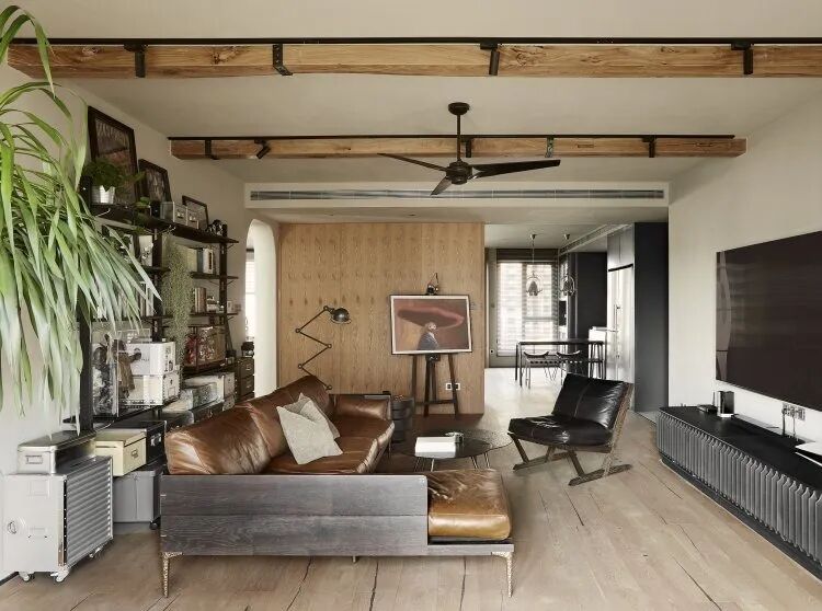 特点十足的业主,需求鲜明的家,都给予设计师非常大的设计灵感。万先生有「时光感」的气质和收藏品隽永、沉静的风格,让25n26联想到自己曾在瑞士建筑里见过的老房梁。经过沟通,他们一拍即合,决定用木色打造一个自然且保留时光痕迹的家。