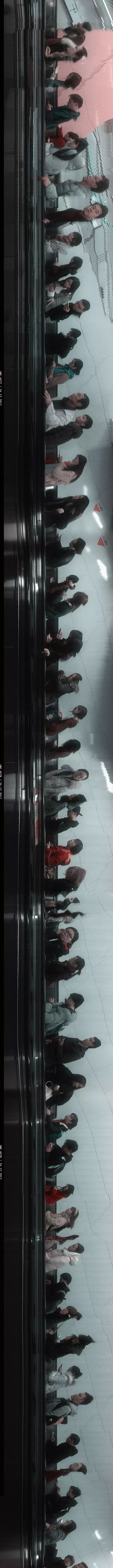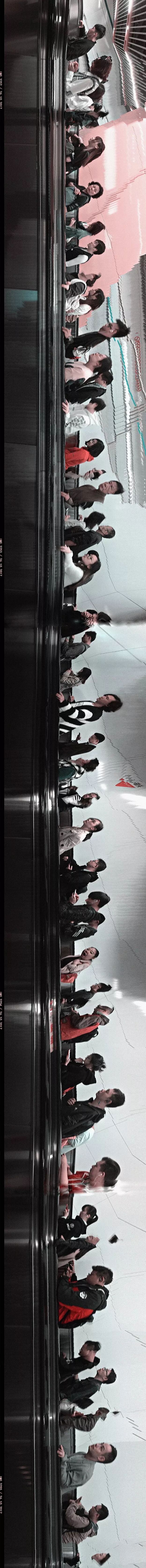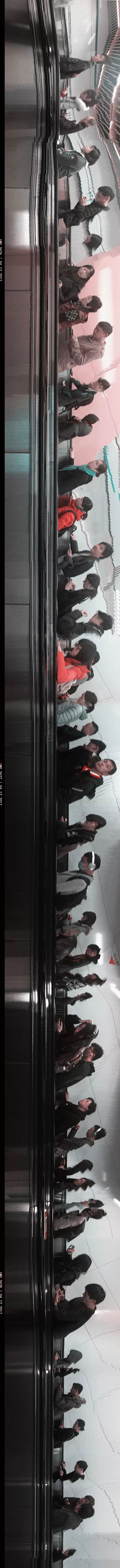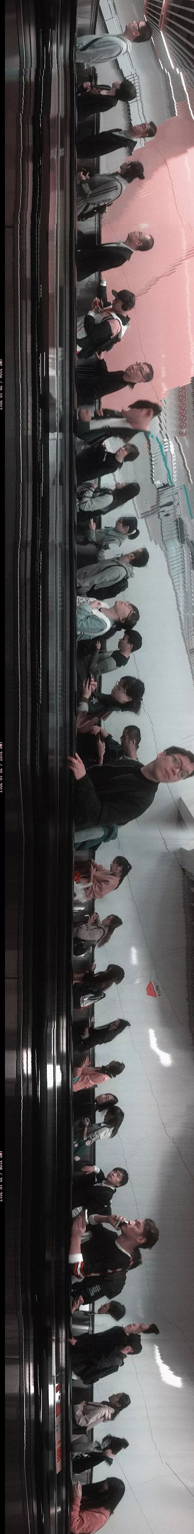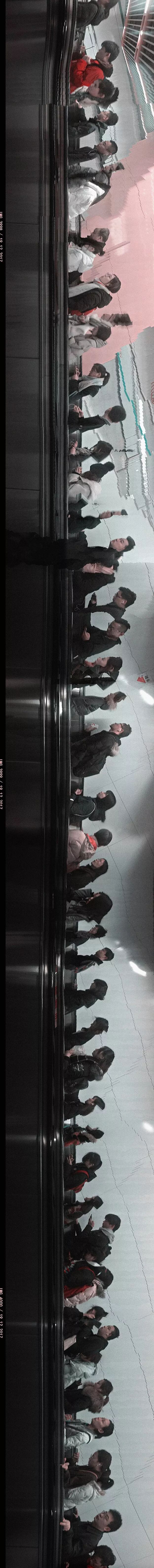 不可否认,艺术家的意识是关乎于个体的和社会的,他近期的作品《上海时间-他者的凝视》系列,发生在地铁的上下电梯上,他没有将群体中的人模糊化,而是将那些表情放大拉长甚至缺失在图像中,以佐证艺术家的影像内容的可读性。