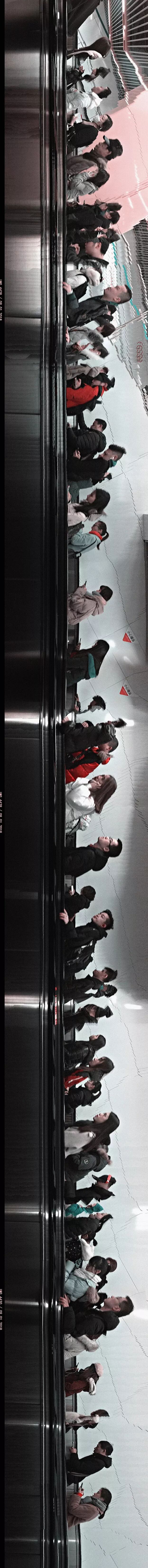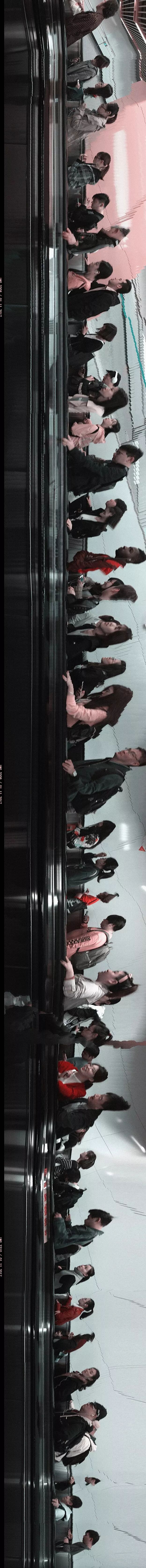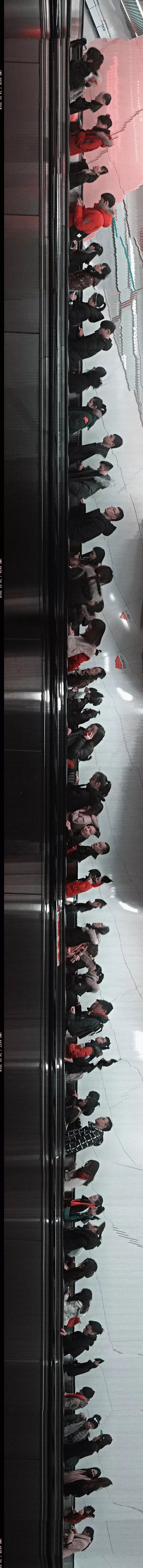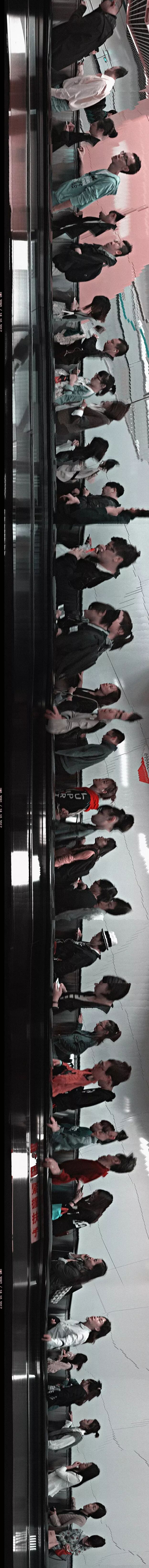 不可否认,艺术家的意识是关乎于个体的和社会的,他近期的作品《上海时间-他者的凝视》系列,发生在地铁的上下电梯上,他没有将群体中的人模糊化,而是将那些表情放大拉长甚至缺失在图像中,以佐证艺术家的影像内容的可读性。