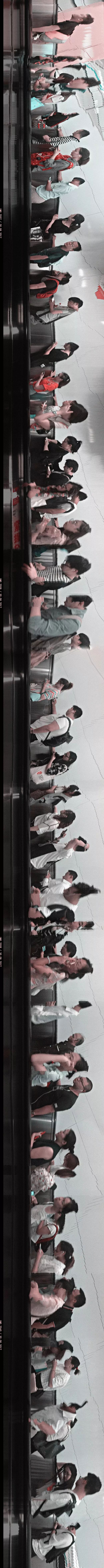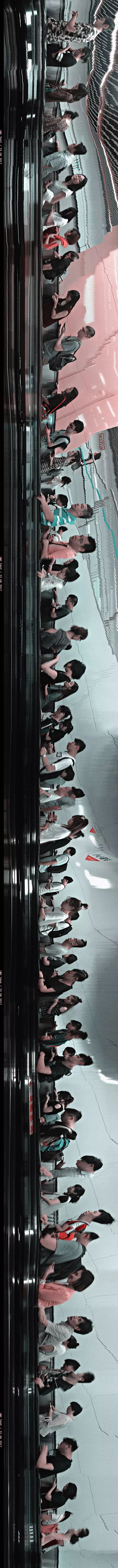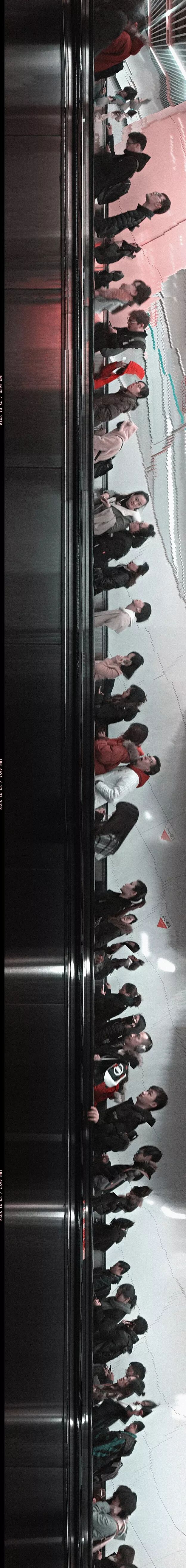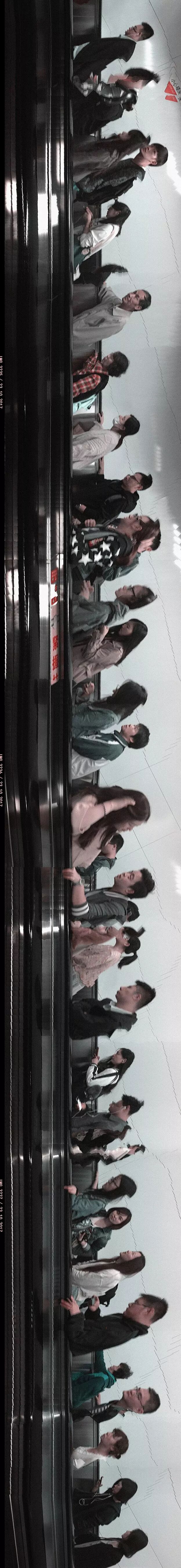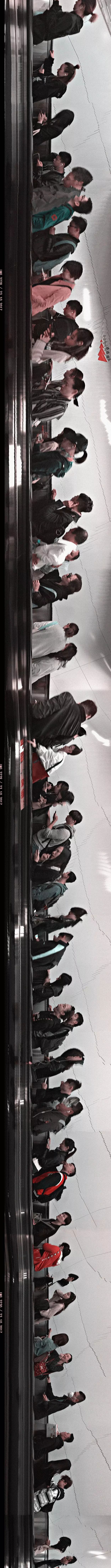 不可否认,艺术家的意识是关乎于个体的和社会的,他近期的作品《上海时间-他者的凝视》系列,发生在地铁的上下电梯上,他没有将群体中的人模糊化,而是将那些表情放大拉长甚至缺失在图像中,以佐证艺术家的影像内容的可读性。