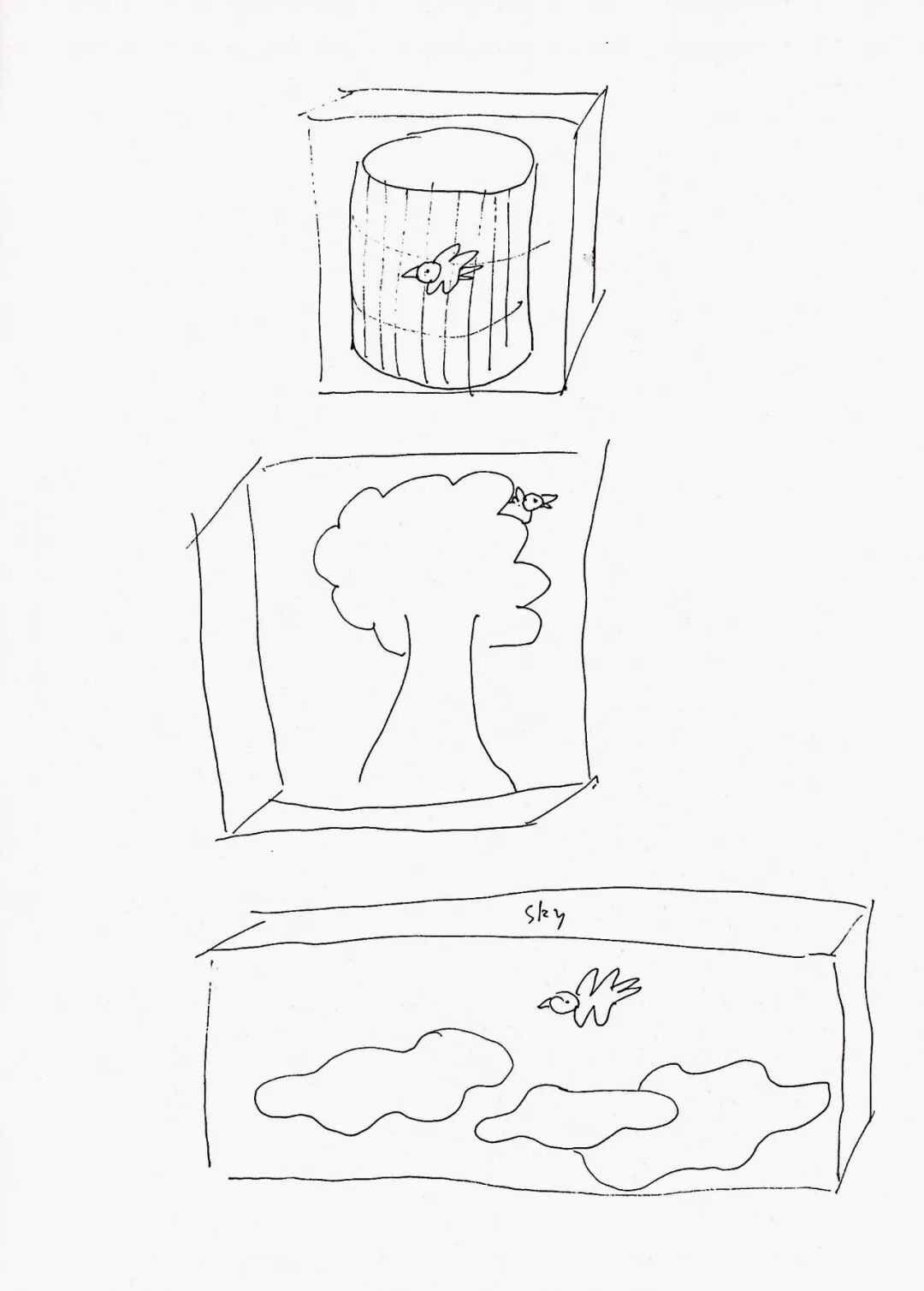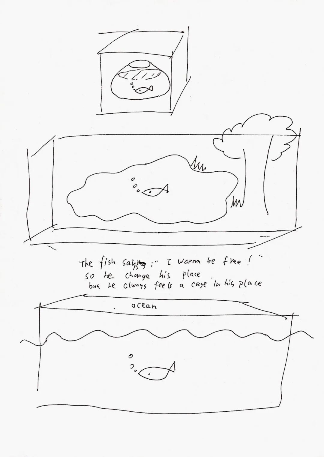 因为家里的猫咪发情之后一直乱尿尿,割了蛋蛋还是乱尿,然后被我拿一根绳子拴起来了,很多朋友看见都觉得猫咪失去了自由,然后我对自由产生了一些思考,想起了加缪局外人里的死囚,想起了鲍勃迪伦的这句诗歌,然后脑海里渐渐有了这些画面,捕捉下来,就是这部漫画cage。