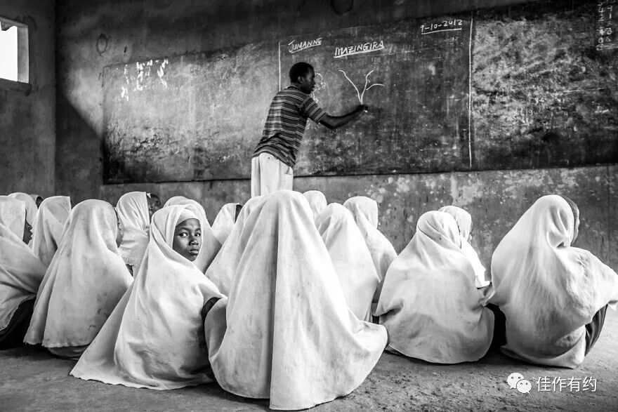 “纳尔逊曼德拉说,教育是你可以用来改变世界的最强大的武器。这张照片拍摄于桑给巴尔的一所学校,那里没有课桌椅或学习用品。所有这些小女孩都拥有一个笔记本和自己的记忆。知识由一位老师传授给他们。每个人都有改变世界的可能性。”