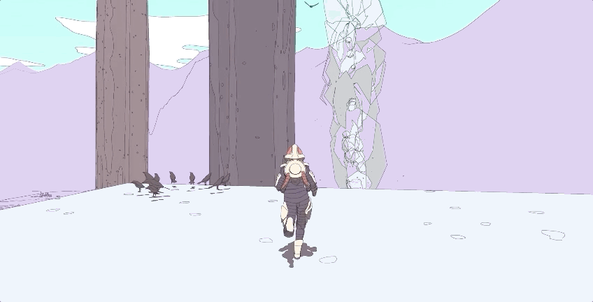 如果你觉得《沙漠旅人》的视觉风格很熟悉,它受到了法国漫画家墨比斯(Moebius)的美学启发,使用柔和的调色板和松散的线条。沙漠风景就像墨比斯的作品《ARZACH》和受墨比斯影响的动画《风之谷》。