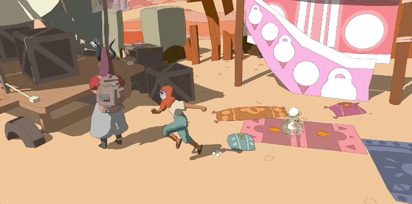 Sable 只是不断地遇到他人,产生一个个小故事,以找到更稀有的面具和更新自行车为探索目标。