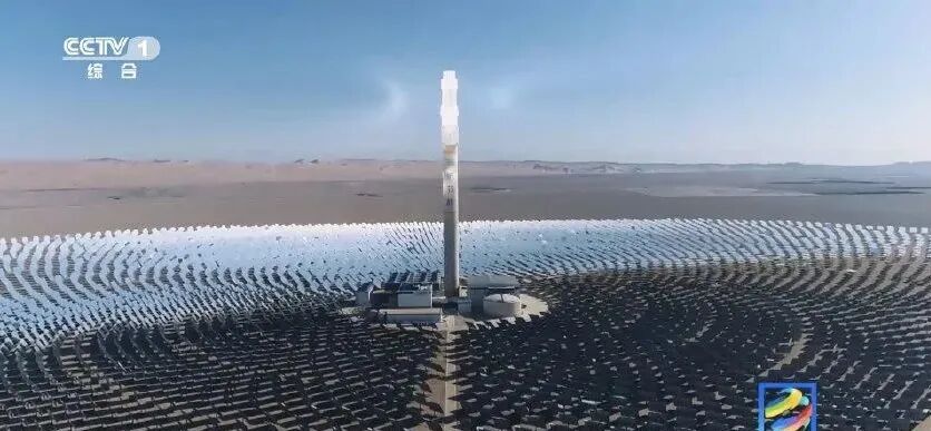 这是在甘肃敦煌的大漠戈壁中的一座全球最高、聚光面积最大的100兆瓦熔盐塔式光热电站。