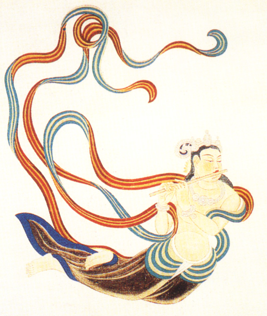 飞天图案真正开始变得飘飘欲仙,越来越女性化,还要得益于道教的兴起。