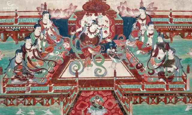 在敦煌壁画中,有一类极为常见的构图方式称为“不鼓自鸣”,各类乐器彩带飘逸,凌空飘舞,无需人的演奏,自能发出天籁之声,体现万物有灵。