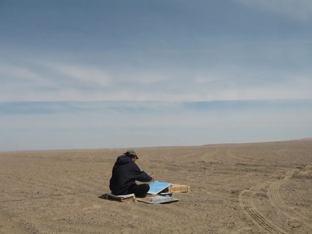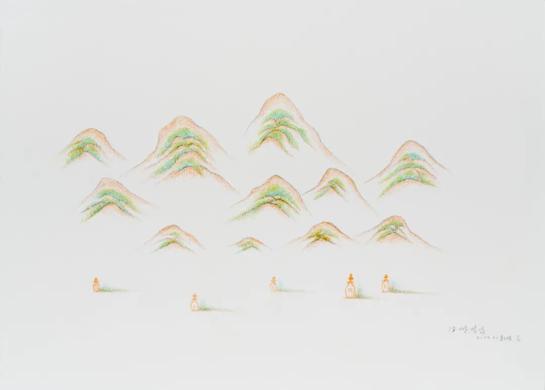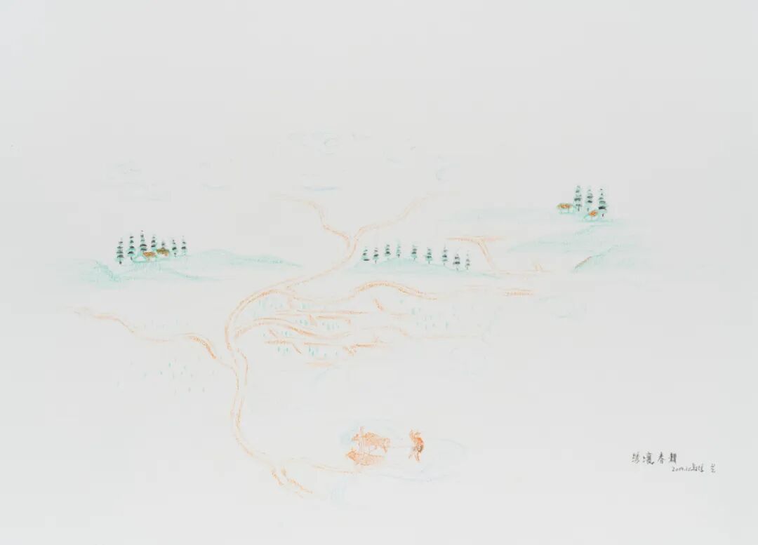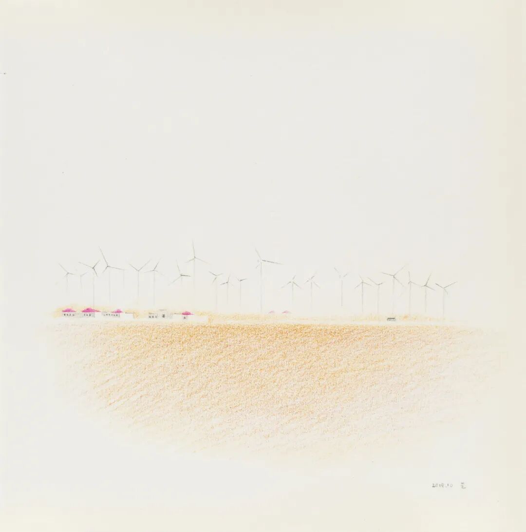 对他而言,《兰州去敦煌途中的风景》绘画并不是体验与理解的表达,而是记录潜在的自然秩序,尽管他的描绘有时可以辨认细节。旅行中的所见会形成所思,尔后的所绘自然变成了文化记忆的载体。武艺的类似绘画似乎没有强调历史与当代、图形与思想,但却是对当代艺术的一种折射。同时,武艺持续将绘画作为一个出口,将所见作为一种本质存在。