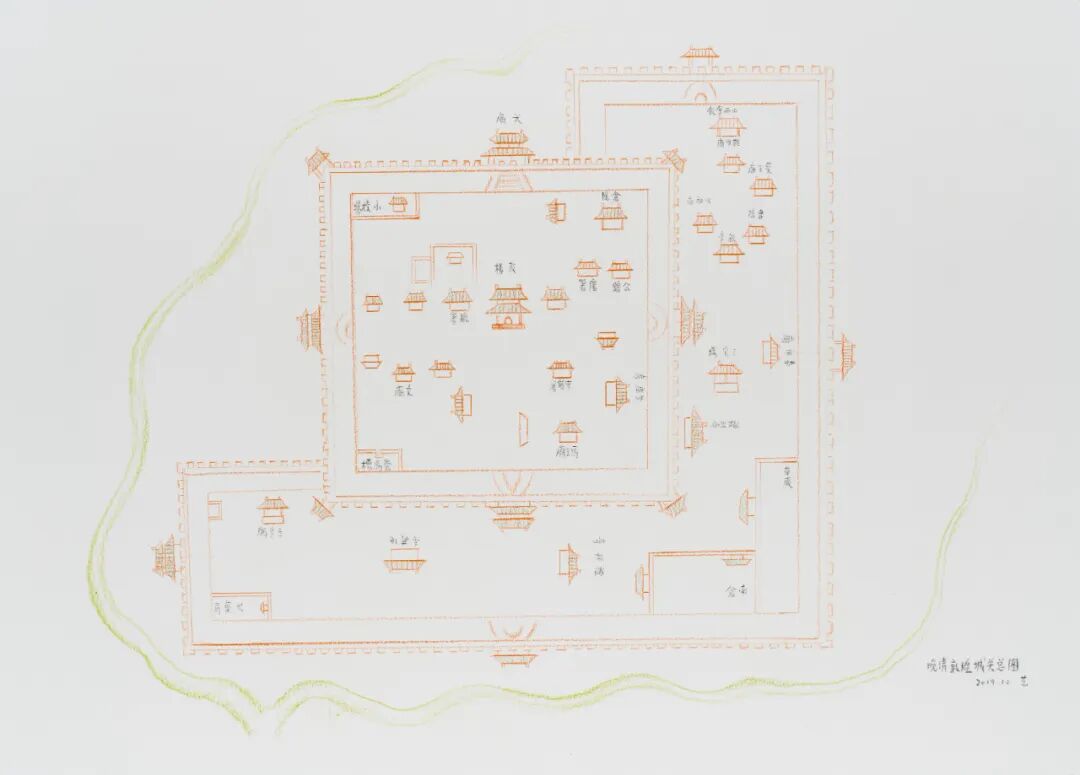 晚清敦煌城关总图 27cm×38cm 纸本铅笔 2019 武艺