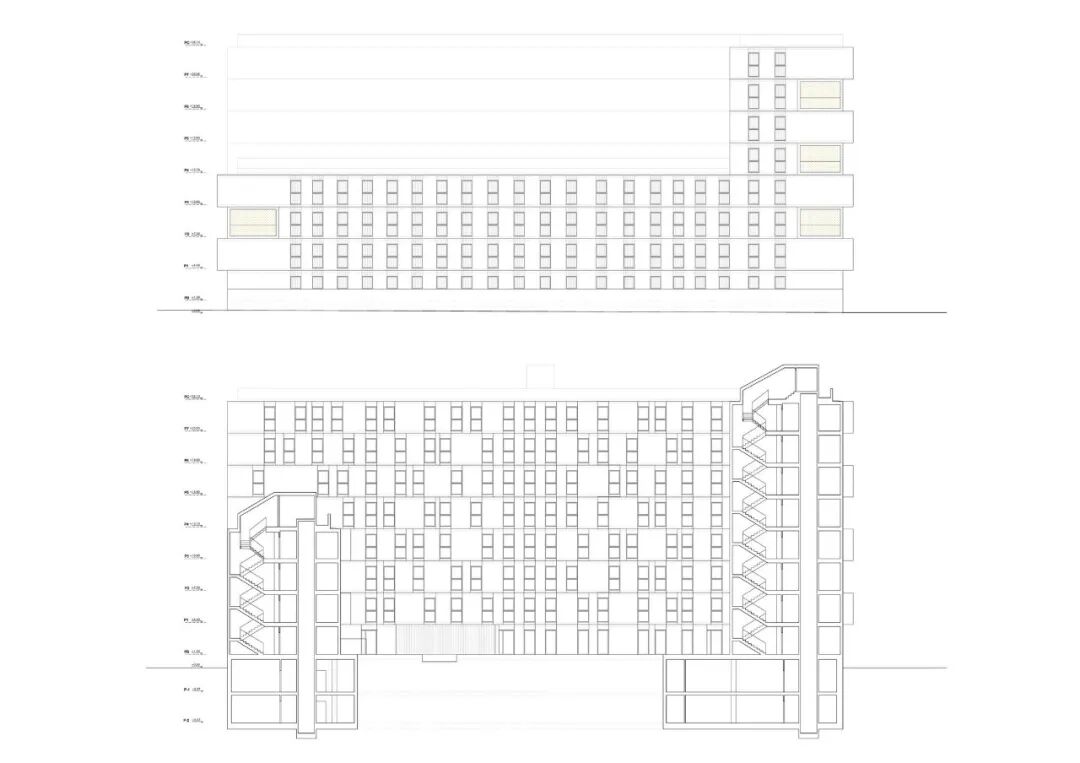 The environment is characterized by its heterogeneity, with buildings of a very diverse architecture and of different uses and sizes (schools, residential buildings of different types, green areas, etc.). Likewise, the urban morphology in relation to the position of the buildings and their heights is very diverse, finding some buildings that are placed isolated inside the plots, others aligned to the road and a mixture of heights that build a diverse and heterogeneous image of the nearby environment. The integration of the building with the spaces surrounding the plot is one of the objectives to be solved with the proposal, creating morphological continuity between the new building and the adjoining buildings and public spaces and solving the accesses in the most comfortable and functional way possible.